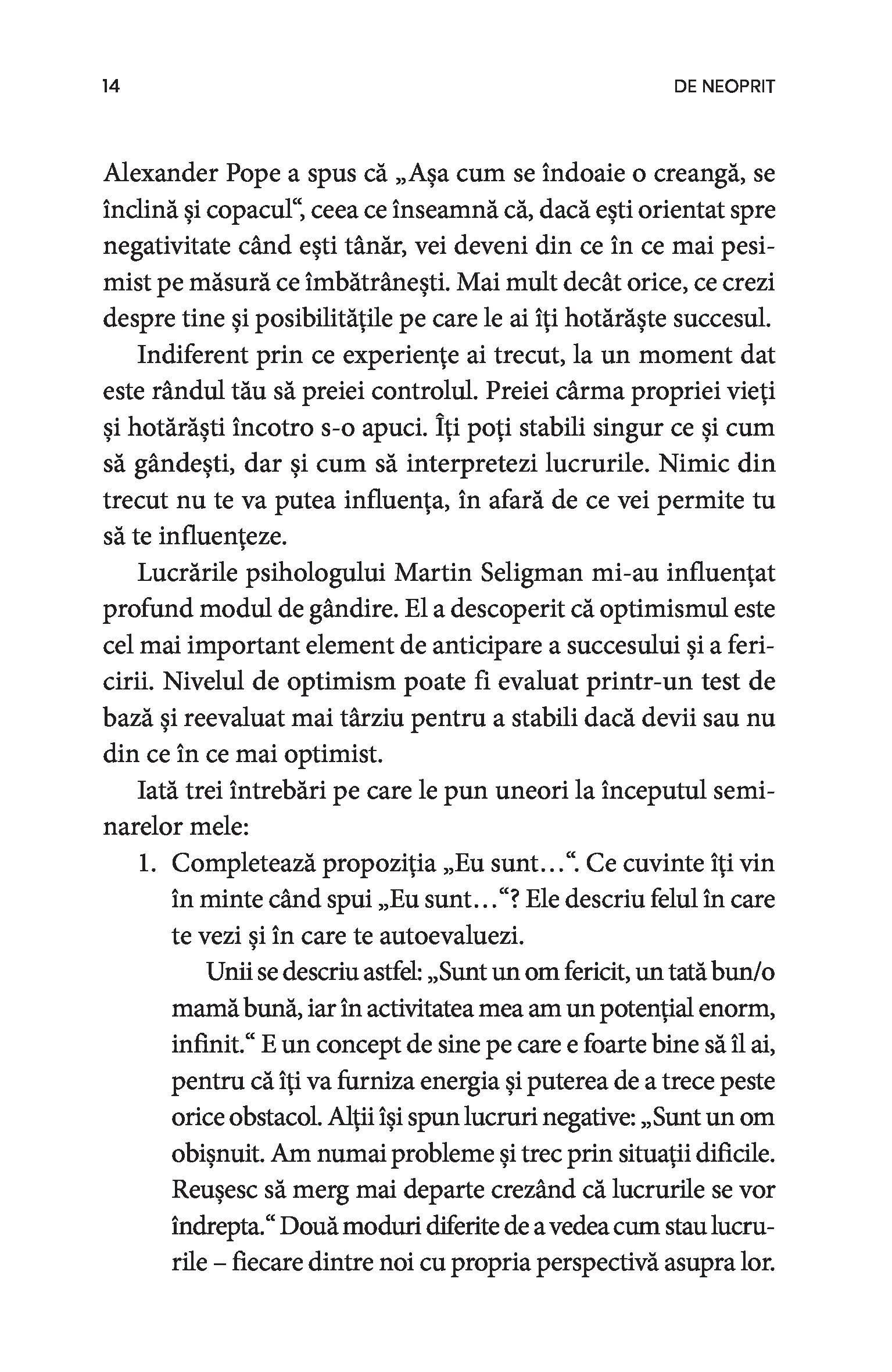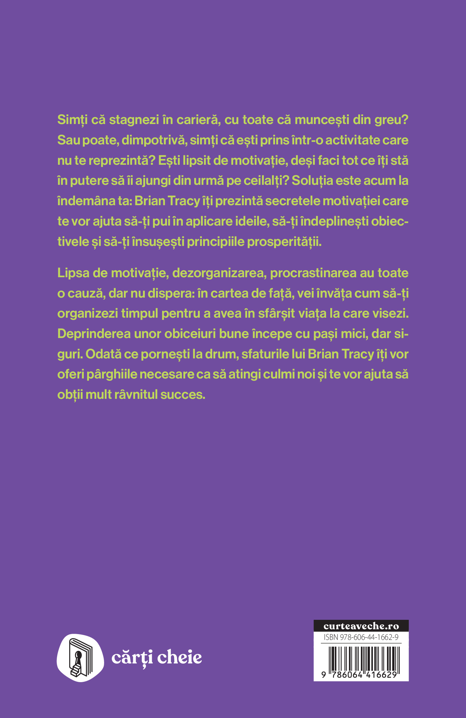 Lipsa de motivație, dezorganizarea, procrastinarea au toate o cauză, dar nu dispera: în cartea de față, vei învăța cum să-ți organizezi timpul pentru a avea în sfârșit viața la care visezi. Deprinderea unor obiceiuri bune începe cu pași mici, dar siguri. Odată ce pornești la drum, sfaturile lui Brian Tracy îți vor oferi pârghiile necesare ca să atingi culmi noi și te vor ajuta să obții mult râvnitul succes.