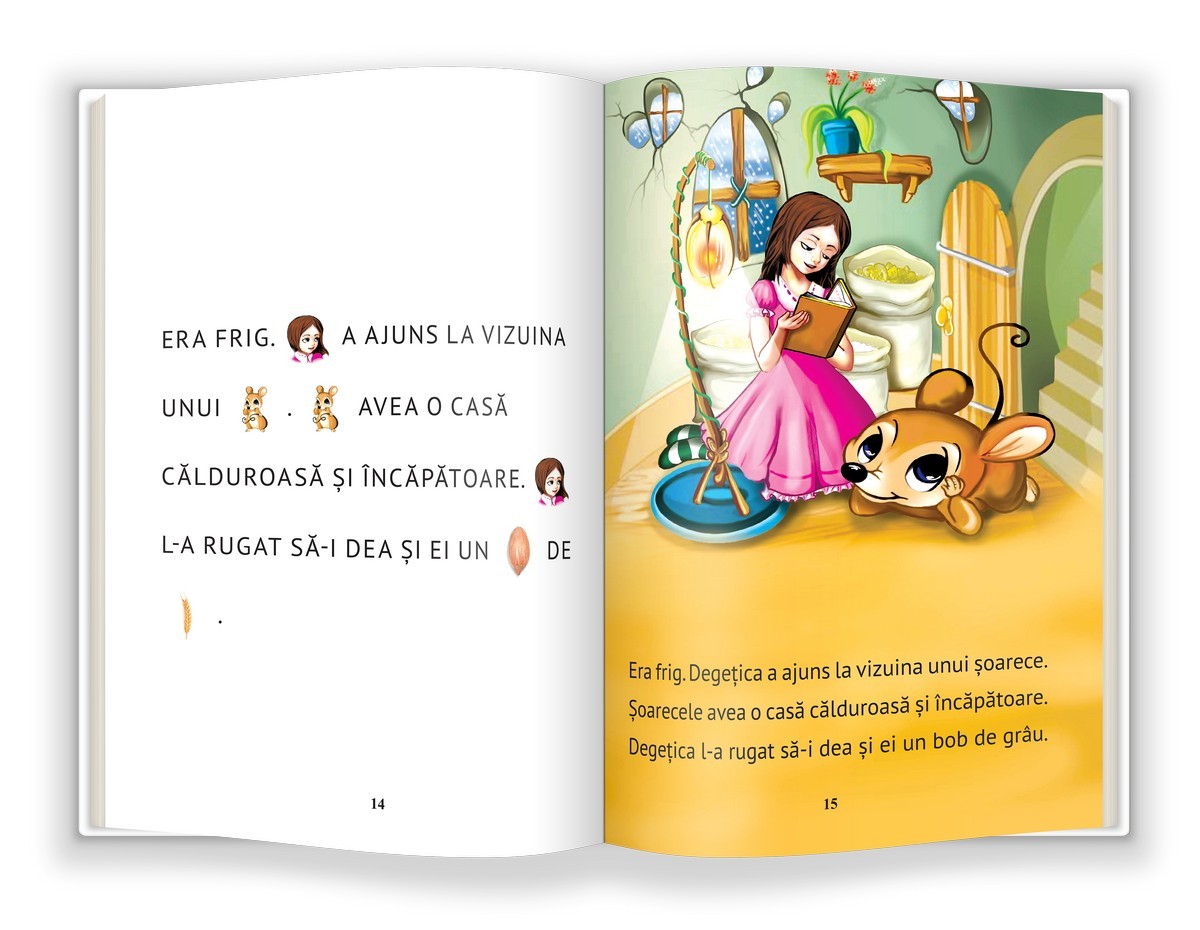 Degețica este povestea unei fetițe cât un degetar, silită să-și petreacă viața sub pământ alături de o cârtiță – acum adaptată pentru preșcolarii care învață să citească primele cuvinte. Cartea este dedicată copiilor de 5-7 ani.