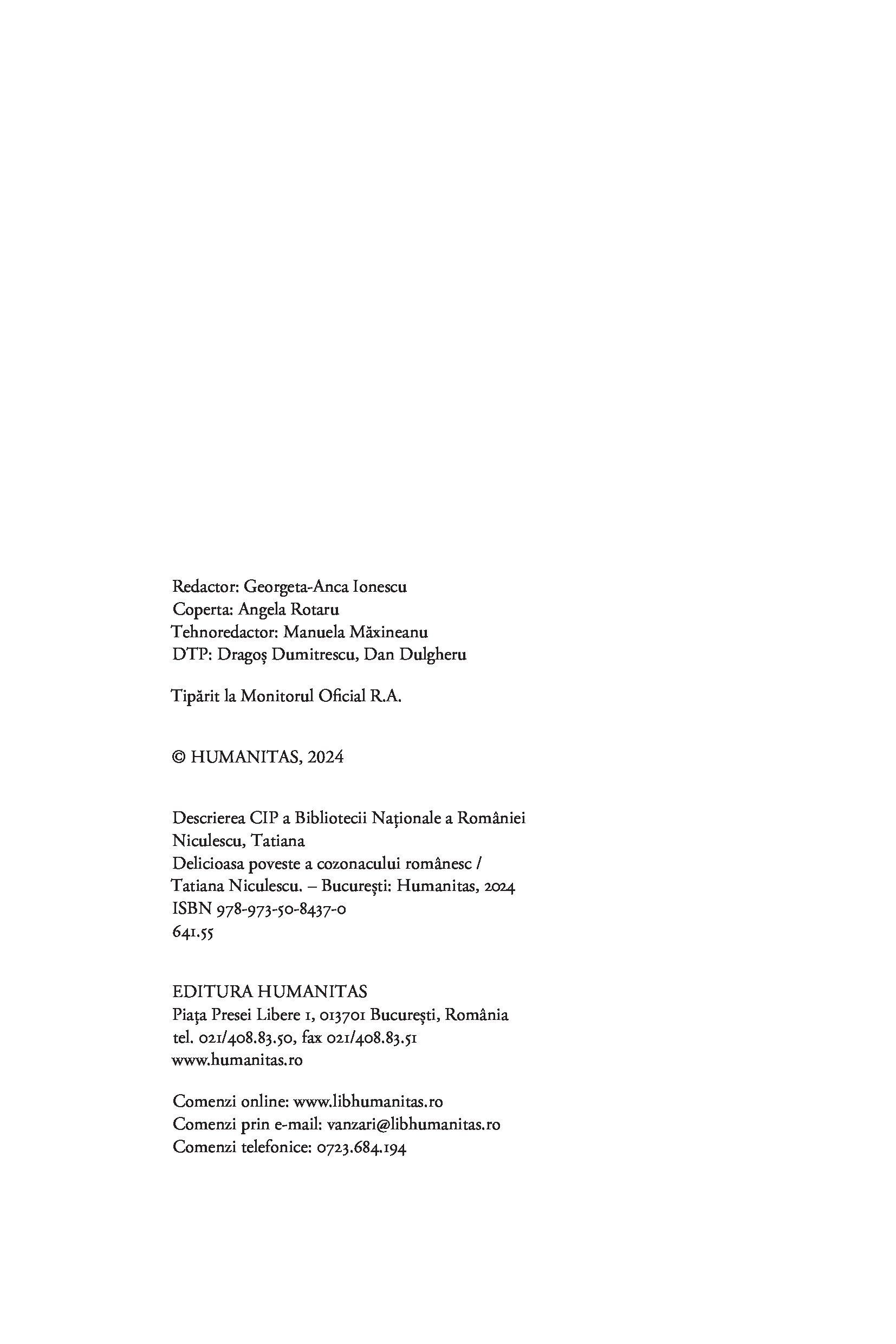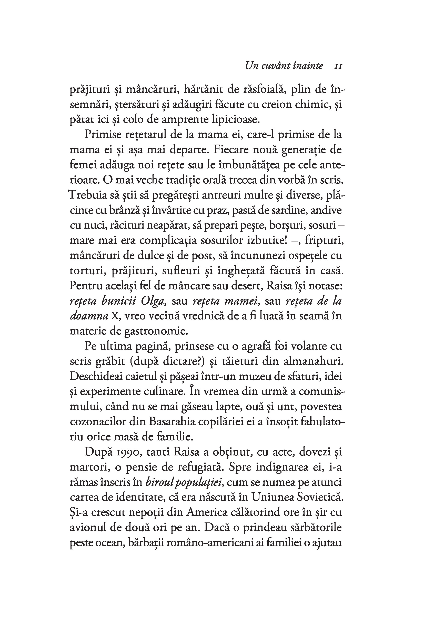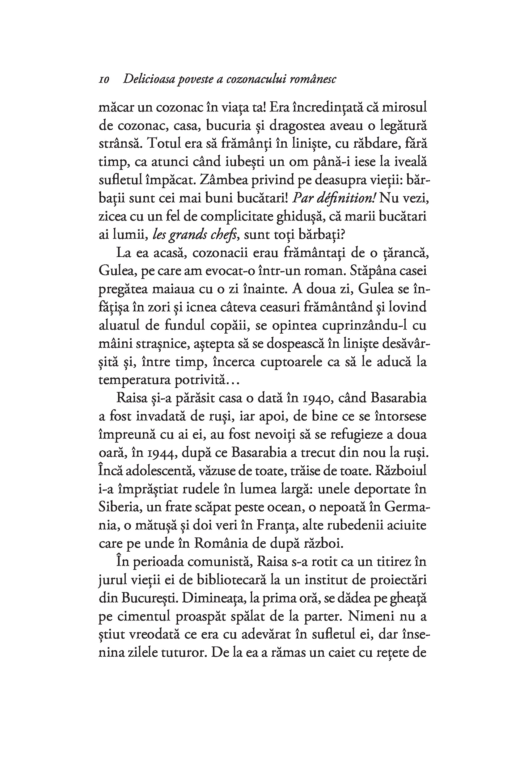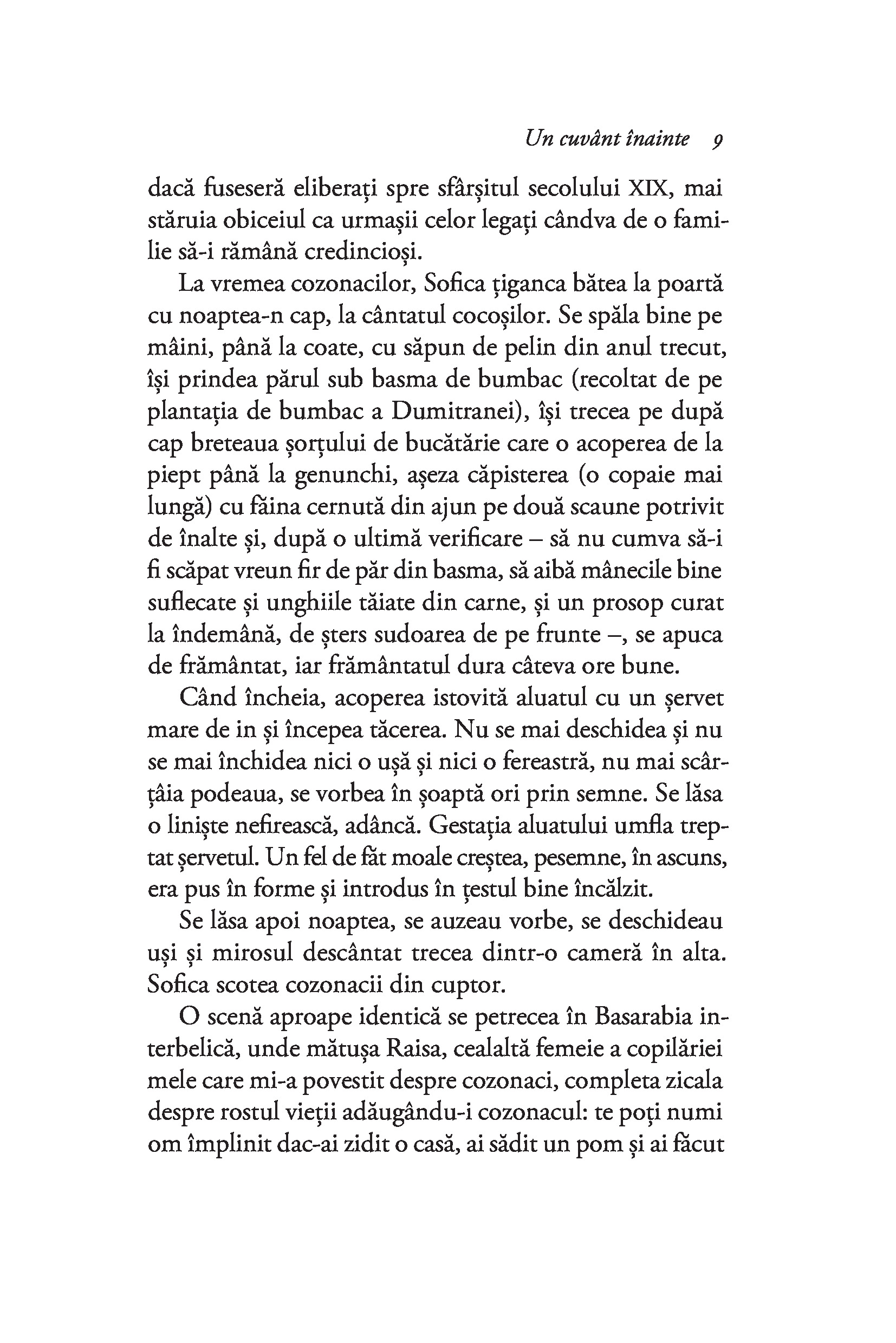„Treptat, poveștile despre cozonaci au început să-mi vorbească altfel: erau capsule ale intimității ocrotitoare, lecții despre pofta de viață în siguranța unui cămin, despre răbdare, încredere, dragoste, tărie de caracter și despre o pașnică întregire a omului în timp, care, în secolul tuturor vitezelor și al tehnologiei digitale, a devenit cu atât mai rară și mai prețioasă.“ — TATIANA NICULESCU