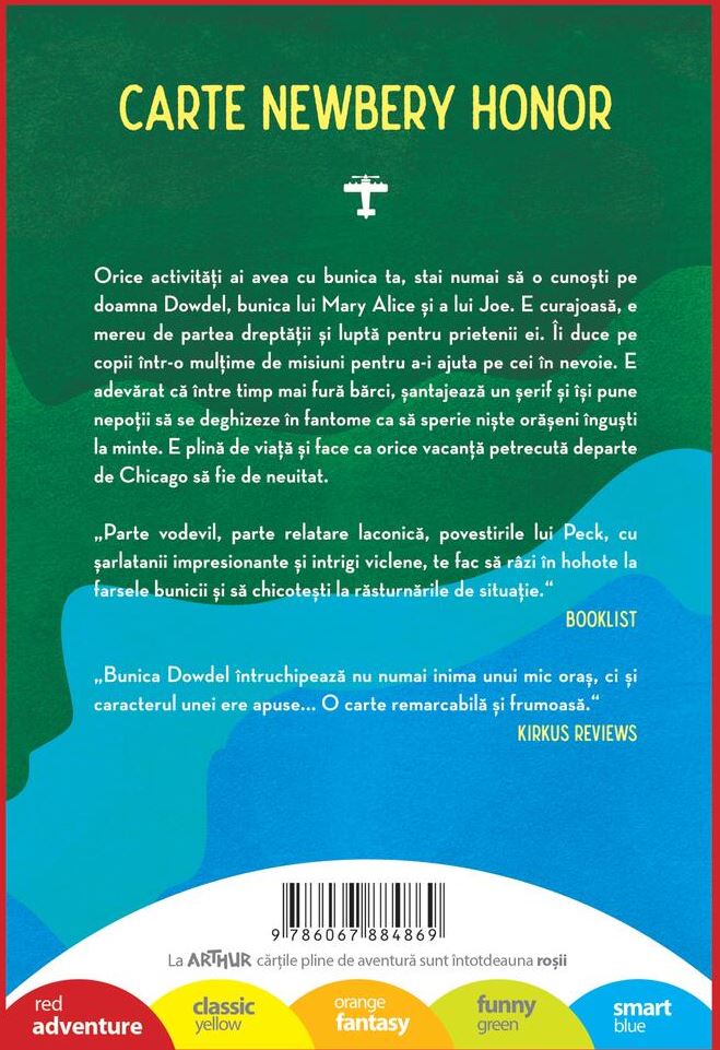 „Bunica Dowdel întruchipează nu numai inima unui mic oraș, ci și caracterul unei ere apuse... O carte remarcabilă și frumoasă.“ Kirkus Reviews. Richard Peck (5 aprilie 1934, Illinois – 24 mai 2018, New York) a fost un scriitor american cunoscut pentru contribuția adusă literaturii pentru copii și adolescenți. A studiat la DePauw University și a fost profesor de literatură engleză.