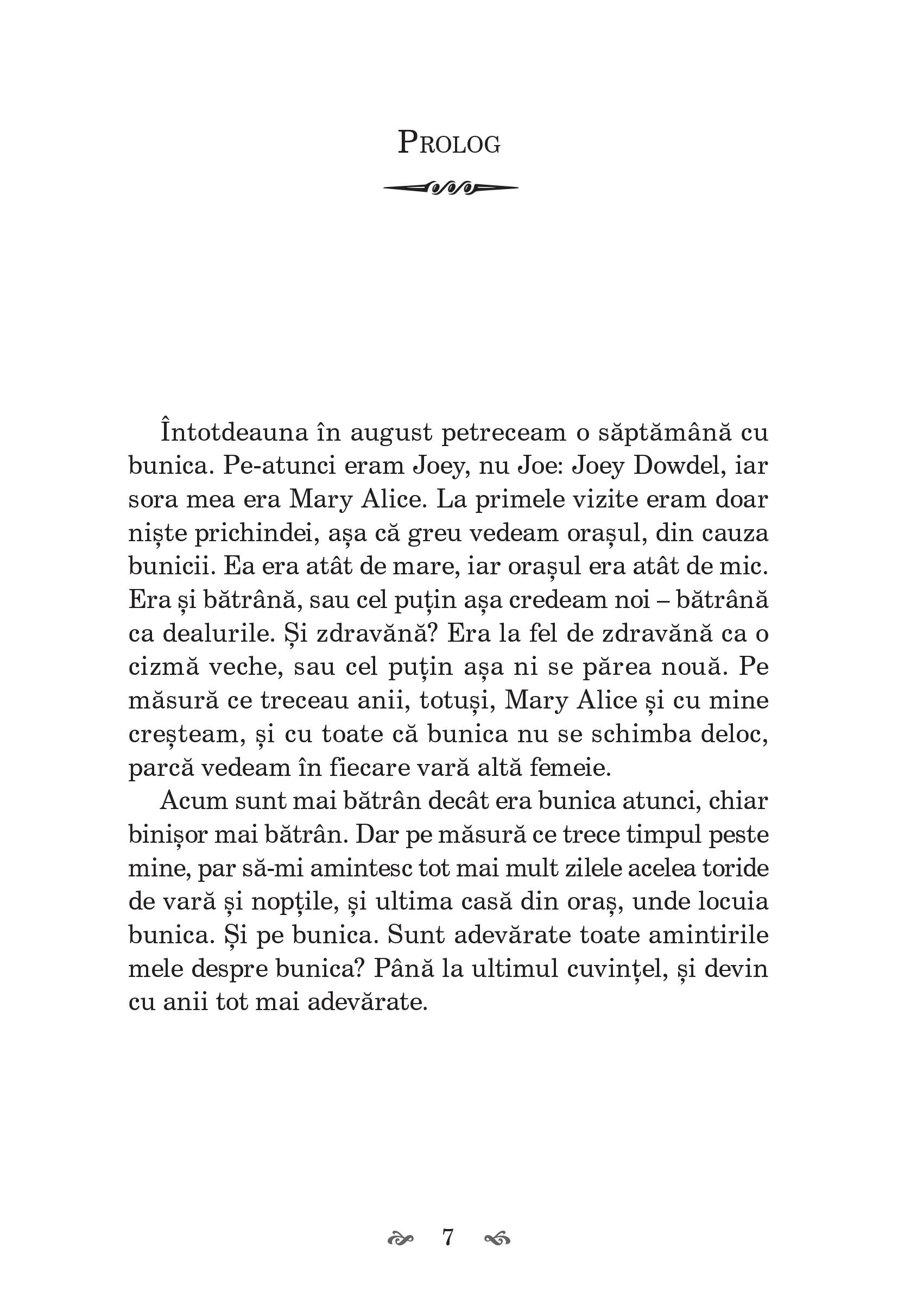 Orice activități ai avea cu bunica ta, stai numai să o cunoști pe doamna Dowdel, bunica lui Mary Alice și a lui Joe. E curajoasă, e mereu de partea dreptății și luptă pentru prietenii ei. Îi duce pe copii într-o mulțime de misiuni pentru a-i ajuta pe cei în nevoie. E adevărat că între timp mai fură bărci, șantajează un șerif și își pune nepoții să se deghizeze în fantome ca să sperie niște orășeni înguști la minte. E plină de viață și face ca orice vacanță petrecută departe de Chicago să fie de neuitat.
