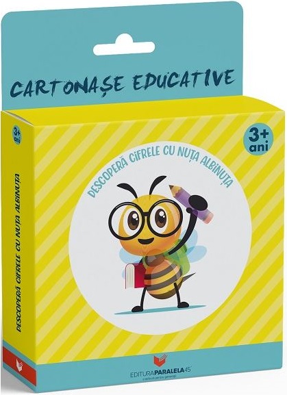 Este uşor şi distractiv pentru cei mici să înveţe cifrele alături de un personaj simpatic precum Nuţa Albinuţa! Setul cuprinde 12 cartonaşe vesele, cu o grafică deosebită, pe care cei mici le vor îndrăgi de la prima vedere. Fiecare cartonaş prezintă o cifră de la 0 la 10, exemplificată prin elemente pe care copilul le recunoaşte din viaţa de zi cu zi: animale, biciclete, baloane şi alte obiecte din mediul înconjurător.
