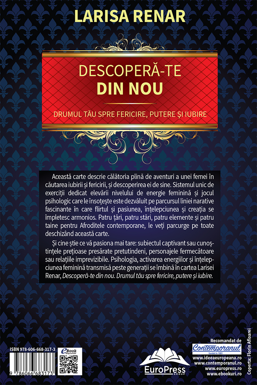 Și cine știe ce vă pasiona mai tare: subiectul captivant sau cunoștințele prețioase presărate pretutindeni, personajele fermecătoare sau relațiile imprevizibile. Psihologia, activarea energiilor și înțelepciunea feminină transmisă peste generații se îmbină în cartea Larisei Renar, Descoperă-te din nou. Drumul tău spre fericire, putere și iubire.