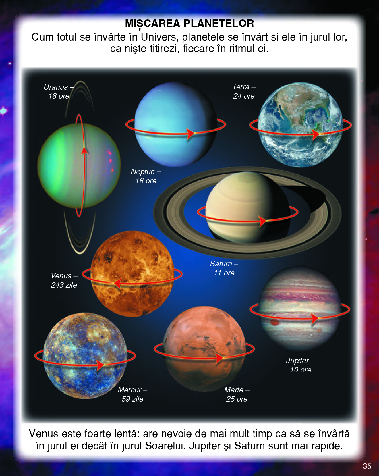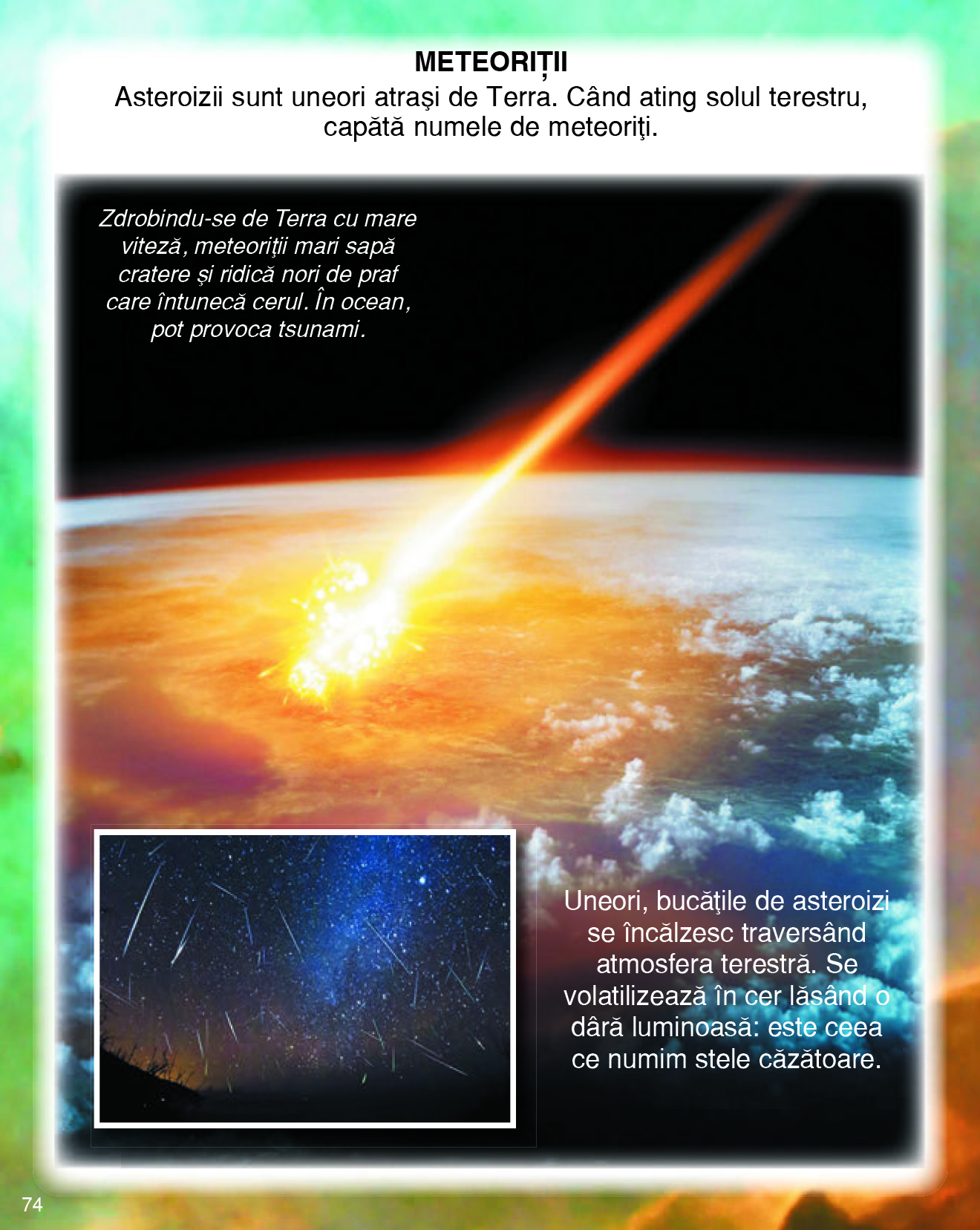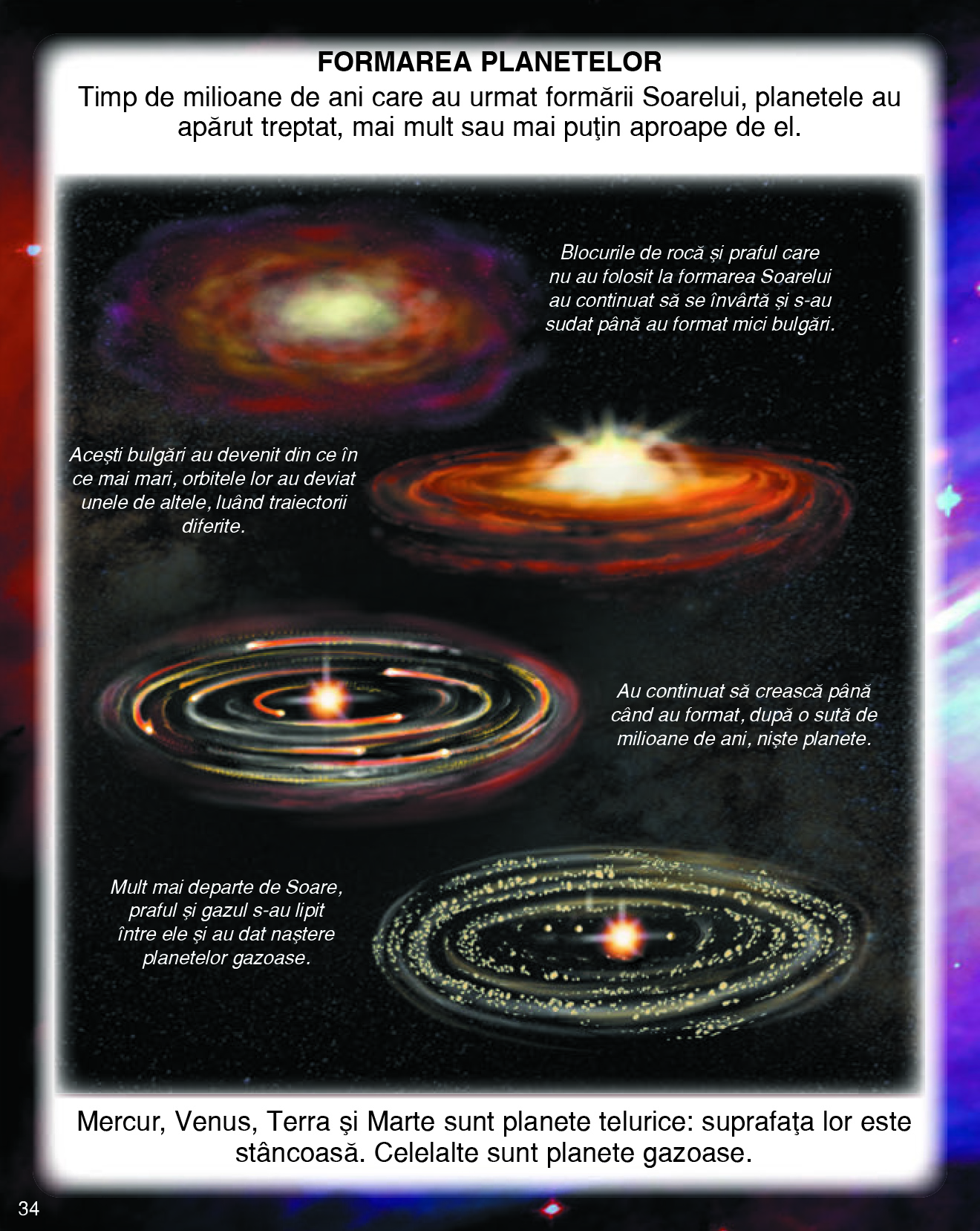 Spaţiul îşi dezvăluie secretele celor mai mici dintre cititori. Copiii vor descoperi răspunsuri la unele dintre cele mai arzătoare întrebări: Cum s-au format planetele? Ce sunt galaxiile și constelațiile? Care este rolul Lunii sau al Soarelui? Când a avut loc prima călătorie a omului în spațiu? Toate aceste lucruri și multe altele sunt însoțite de ilustrații minunate, pline de culoare.