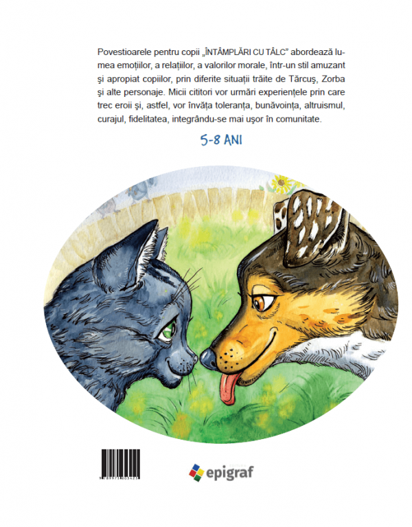 Povestioarele pentru copii „ÎNTÂMPLĂRI CU TÂLC” abordează lumea emoţiilor, a relaţiilor, a valorilor morale, într-un stil amuzant şi apropiat copiilor, prin diferite situaţii trăite de Tărcuş, Zorba şi alte personaje. Micii cititori vor urmări experienţele prin care trec eroii şi, astfel, vor învăţa toleranţa, bunăvoinţa, altruismul, curajul, fi delitatea, integrându-se mai uşor în comunitate.