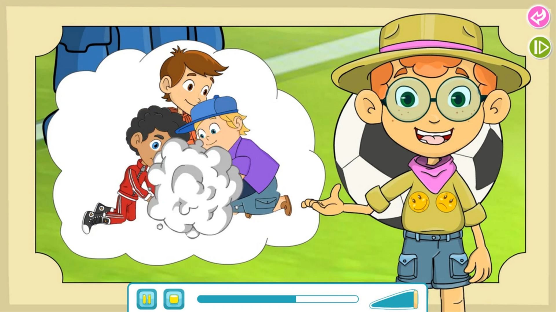 Alături de simpaticul detectiv de emoții, copilul va detecta toate emoțiile pe care cei cinci prieteni (Ela, Mia, Titi, Dudu și Andu) le trăiesc la grădiniță, la bunici, la magazin, în parcul de joacă, la picnic sau în vacanță la mare.