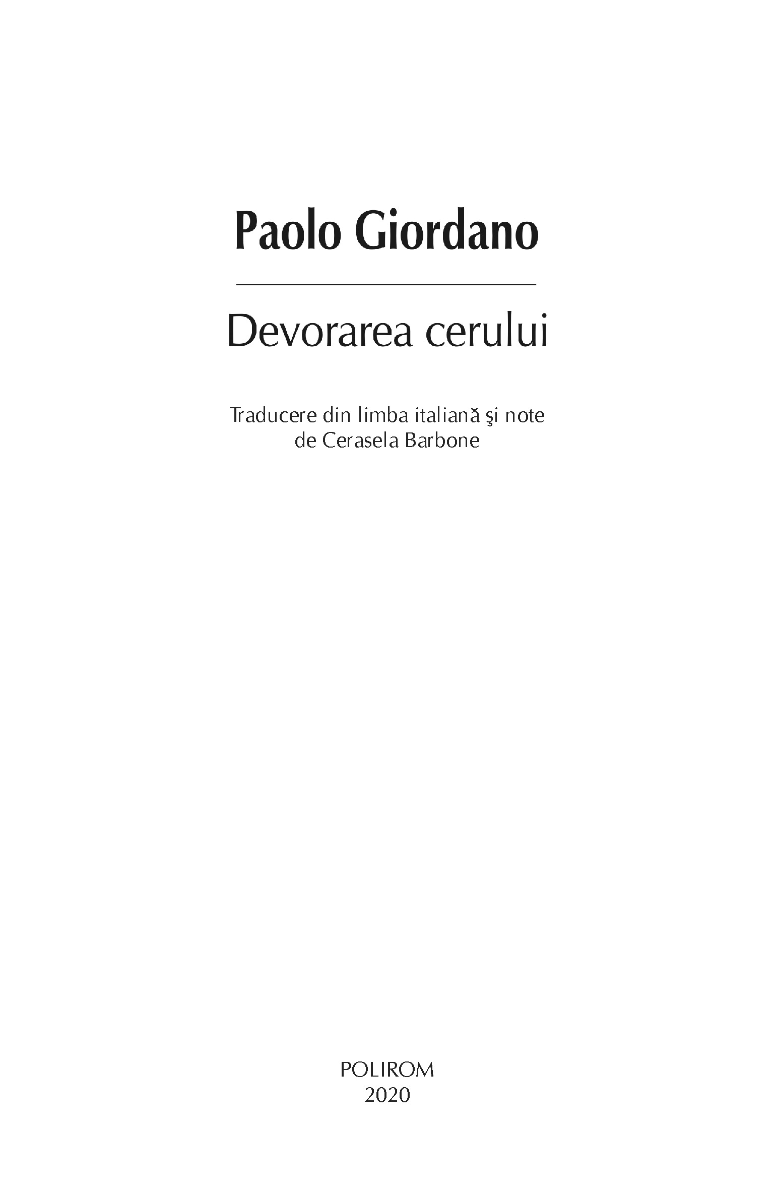 „Giordano şi-a demonstrat deja abilitatea de a descrie şi a prezenta relaţii de durată profunde şi puternice, o constantă în viaţa per-sonajelor sale, dar care – în acelaşi timp – nu ajung să se desăvîrşească... Titlul Devorarea cerului nu se referă doar la aspiraţia romanului propriu-zis, ci şi la aspiraţia tinerilor, cu presupusa lor forţă şi omnipotenţă, cu puterea pasiunii lor, cu vitalitatea lor – un laitmotiv al romanelor lui Giordano, tratat splendid şi aici, ca şi în celelalte cărţi ale scriitorului.” (Lo Sbuffo)