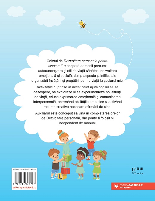 Caietul de Dezvoltare personală pentru clasa a II-a acoperă domenii precum: autocunoaștere și stil de viață sănătos, dezvoltare emoțională și socială, dar și aspecte științifice ale organizării învățării și pregătirii pentru viață la școlarul mic.
