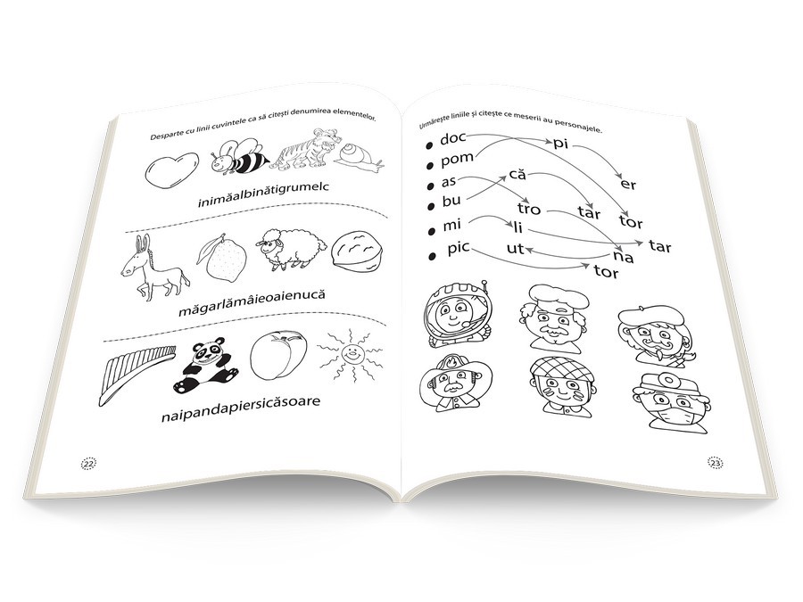Acest caiet face parte din colecția „Activități de zi cu zi”, care urmărește dezvoltarea copilului de-a lungul „copilăriei mijlocii”, în perioada dintre 3 ani și 6 ani. În această etapă a evoluției sale, jocul trebuie să fie activitatea principală – iar sarcinile propuse în caiete nu se abat de la acest principiu. Învățarea va deveni, astfel, o plăcere! Cartea cu activități îl va ajuta pe copil să își exerseze cititul, să își dezvolte limbajul, să cunoască literele și să scrie.
