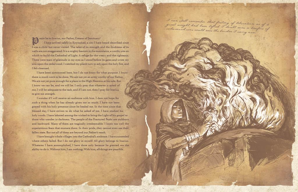 Following the Cathedral of Light's unexpected defeat in the Burning Hells, Reverend Mother Prava has returned to Kyovashad broken, with doubt clouding her mind. Lacking guidance from her patron, the Reverend Mother turns to scholarly pursuits as she heals her body and soul, learning all she can from Sanctuary's varied denominations...even as a corruptive force begins to grow from within her own.