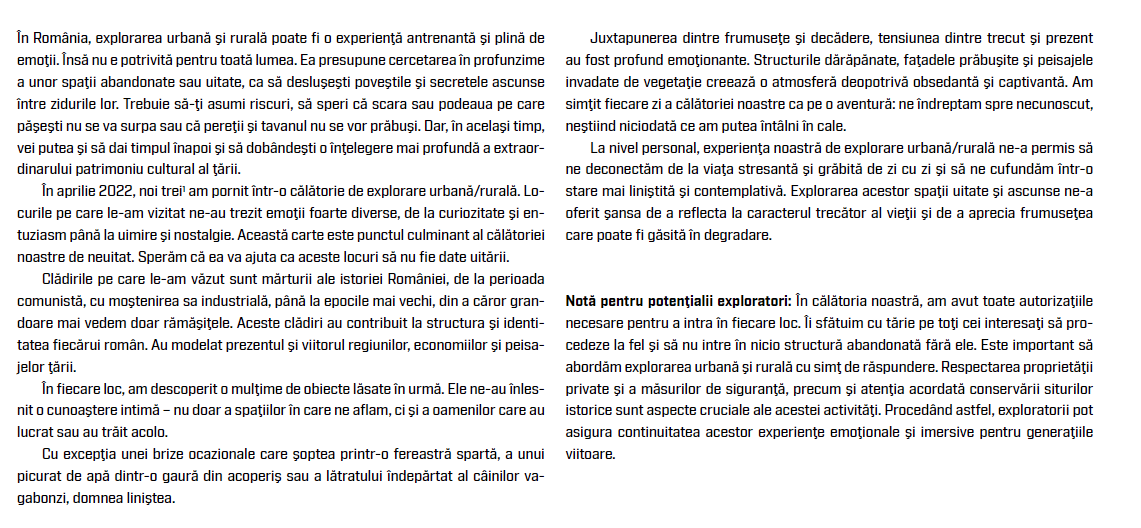 Romania has a remarkable number of urban and rural historical sites and gems. Yet, despite their international recognition, far too many have ultimately been left neglected and are in dire need of rediscovery and restoration. In Of Stone and Steel, Her Royal Highness Princess Sophie of Romania, an award-winning and internationally-acclaimed photographer, bears witness to these sites, casting her lens – and thereby some limelight – upon them. She guides the reader through an at once intimate and captivating visual odyssey through these now-abandoned structures, endeavouring to keep their memory alive – lest they fall into oblivion and become the ghosts of eras past.