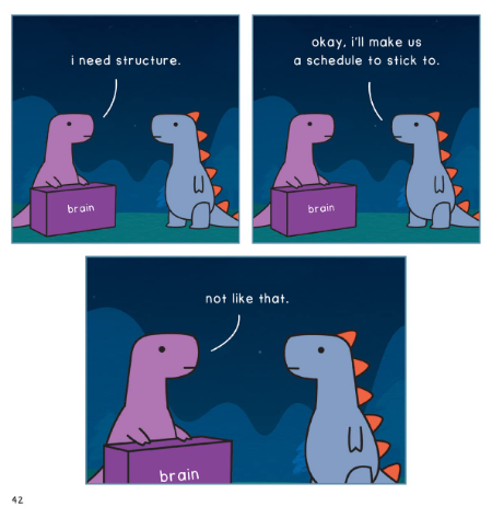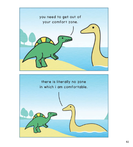 A comic about dinosaurs finding meaning, together from the international bestselling team behind dinosaur therapy, @dinosandcomics including exclusive, never-before-seen bonus comics posing questions such as ‘do I exist?’, ‘how should I live?’, ‘what is beauty?’ in each comic, dinosaur characters explore how to exist in the modern world and meditate on what it means to ‘live well’.