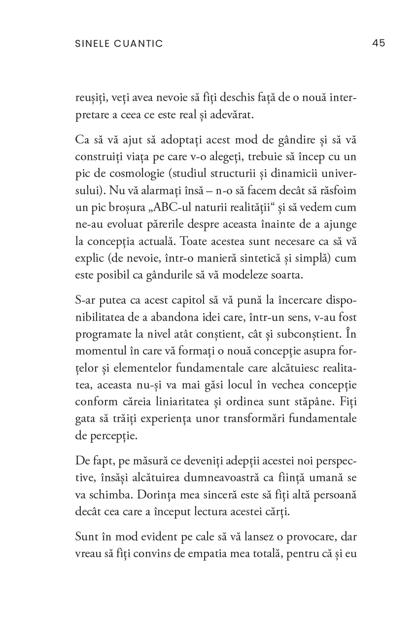 Postulatul cărţii de faţă evidenţiază ideea că niciun om nu e condamnat din punct de vedere genetic să rămână acelaşi, că nu e legat pe viaţă de un anumit mod de a fi. O nouă ştiinţă ia naştere pentru a veni în ajutorul oamenilor şi pentru a-i susţine în crearea realităţii pe care şi-o doresc.