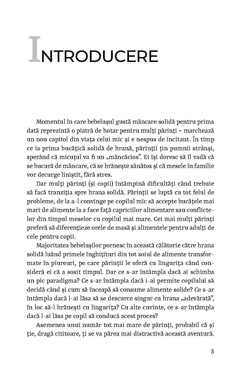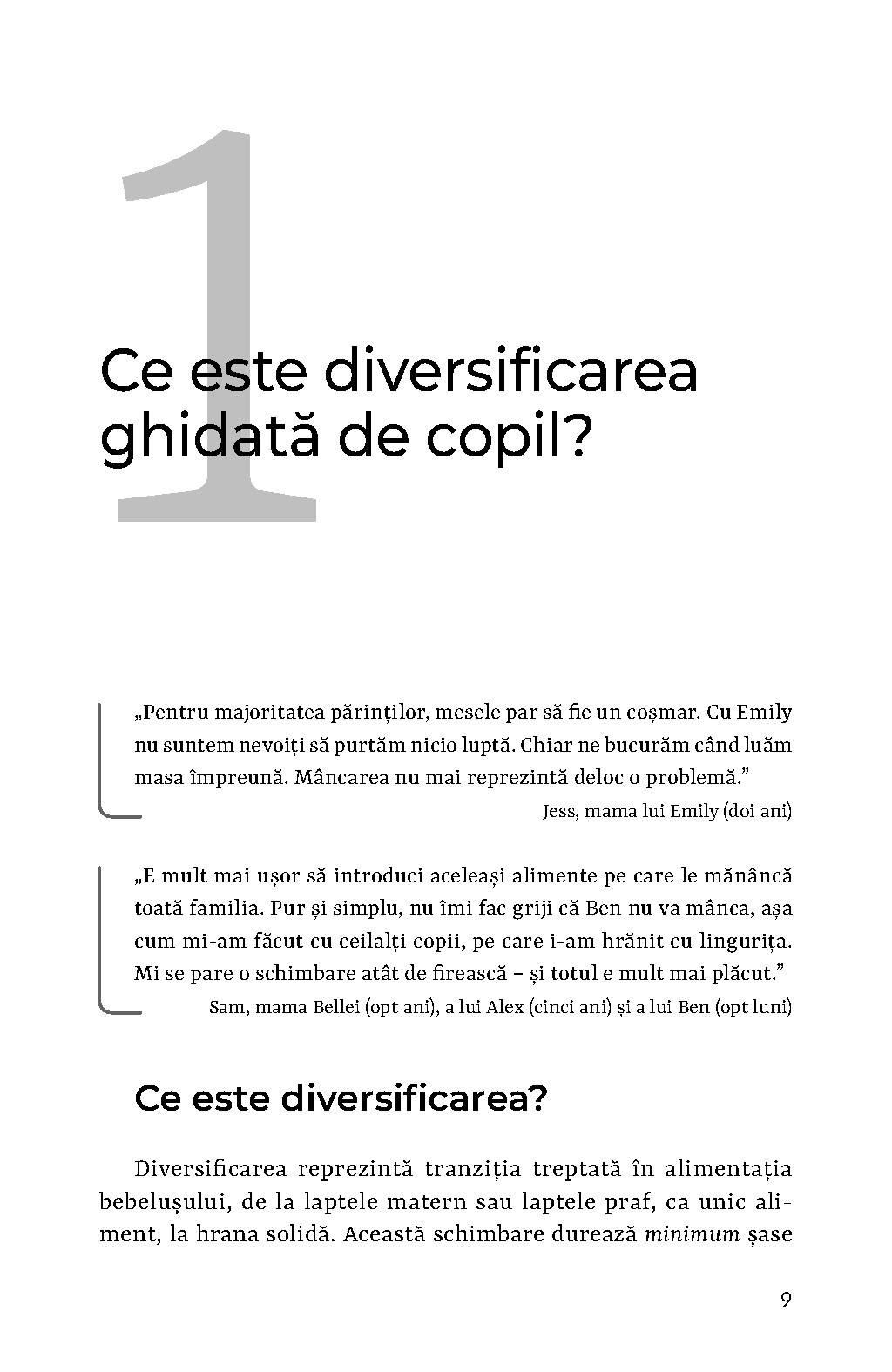 Uitați de piureuri și hrănit cu lingurița de către un adult! Lăsați copiii să aleagă alimentele dorite, preparate după indicațiile din carte, și să se hrănească singuri. Acest lucru le va cultiva independența și îi va face să se bucure de fiecare masă.