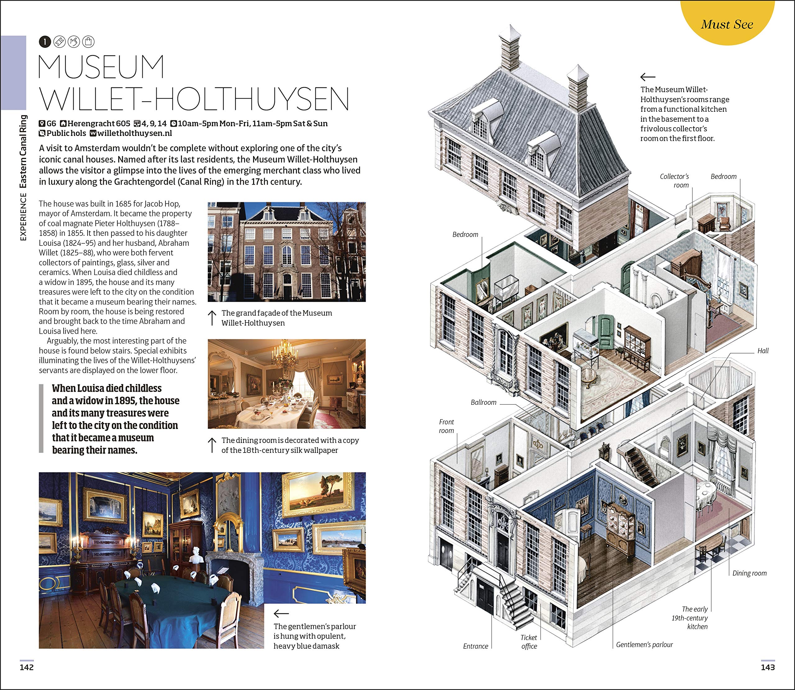 - Hand-drawn illustrations show the inside of the must-see attractions, including Oude Kerk, Museum Ons' Lieve Heer op Solder, and the Museum Willet-Holthuysen
