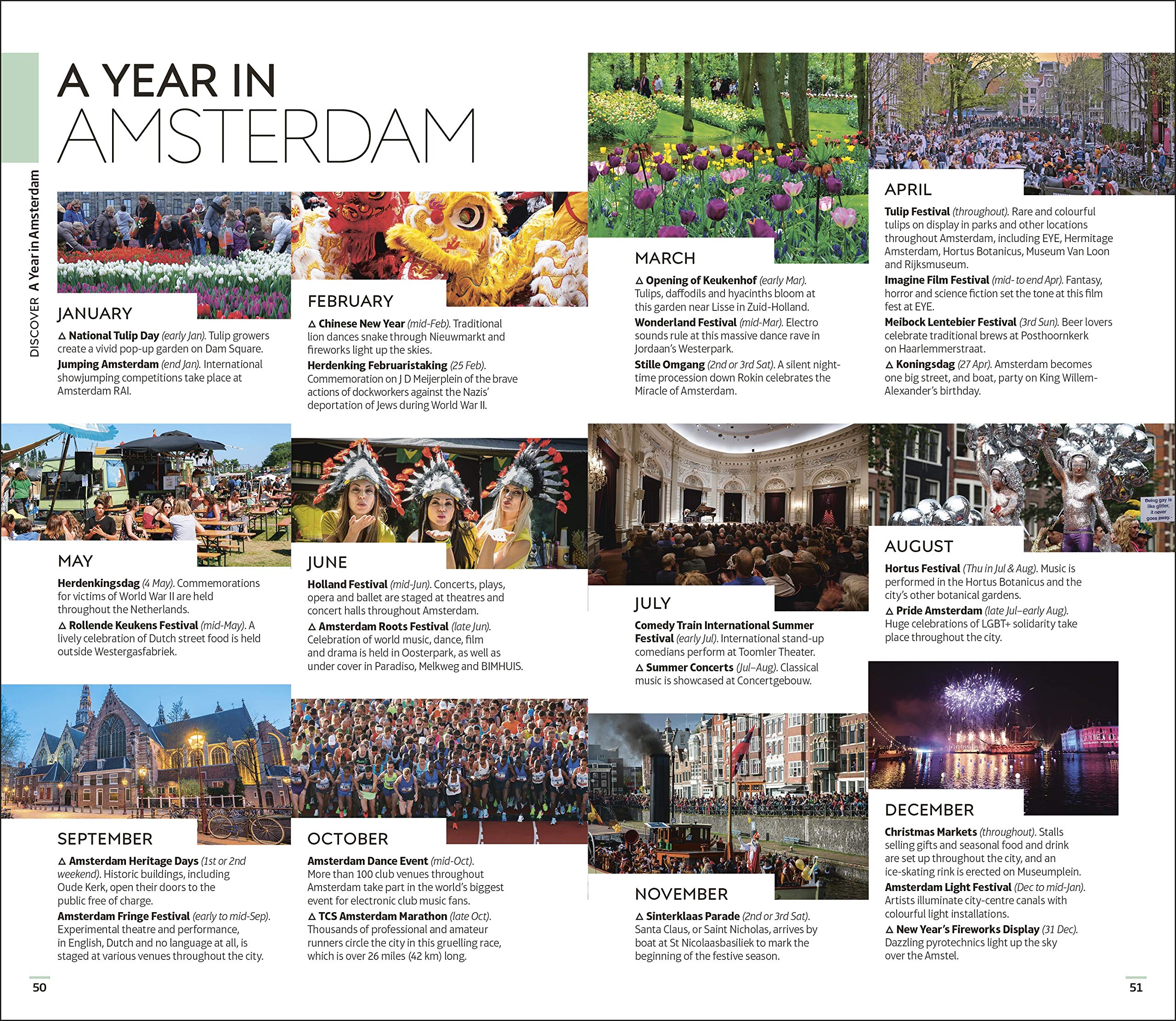 - A year-long calendar of events in Amsterdam gives a selection of local events and festivals for all seasons