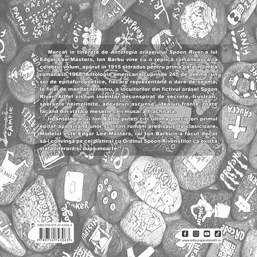 În antologia lui Ion Barbu puteți citi ultima poezie ori primul epitaf aparținând unor scriitori români predispuși la clasicizare. Modelul este Edgar Lee Masters, iar Ion Barbu n-a făcut decât să-i convingă pe cei distinși cu Ordinul Spoon-Riveriștilor că există viață literară și după moarte.