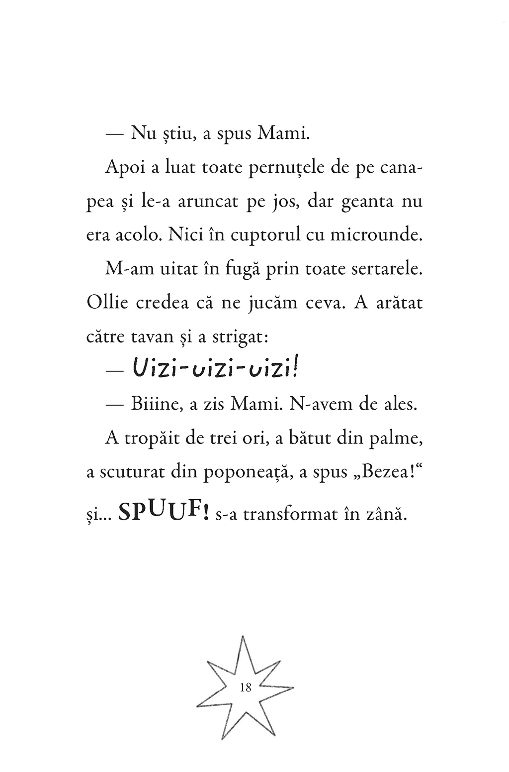 Mami arată normal, la fel ca toate mamele... dar nu e. De fapt, ea se transformă în zînă cînd ţi-e lumea mai dragă. Şi, cînd o să fiu mare, mă fac şi eu zînă, ca ea. Ştiu de pe-acum prima mea vrajă. O să fac să apară primul meu unicorn.