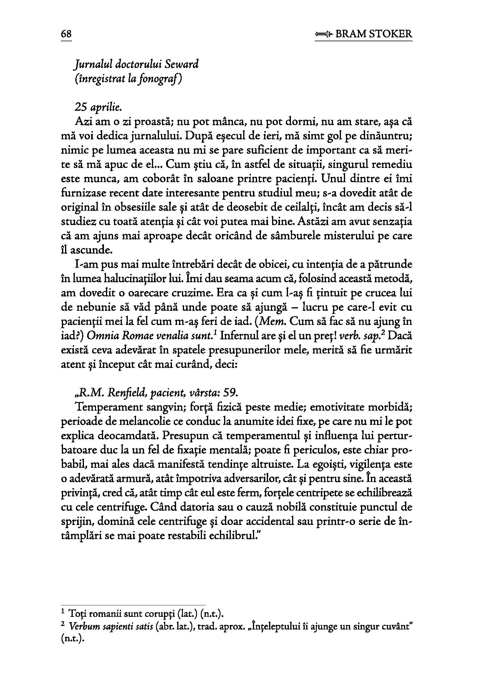 Dracula este, neîndoielnic, un simbol asociat României. Mai mult decât atât, este punctul de origine pentru o întreagă mitologie modernă care a dat naștere unei culturi pop de mare anvergură, traversând diverse domenii, de la cinematografie la turism, trecând prin modă, literatură, industria entertainmentului etc. Noua ediție, rezultat al colaborării dintre Asociația Ivan Patzaichin – Mila 23 și Editura Vellant, vine în întâmpinarea tuturor celor care vor să (re)descopere un personaj care a bântuit visele și imaginarul atâtor generații. A se citi cu lumina aprinsă și cu un cățel de usturoi în buzunar!