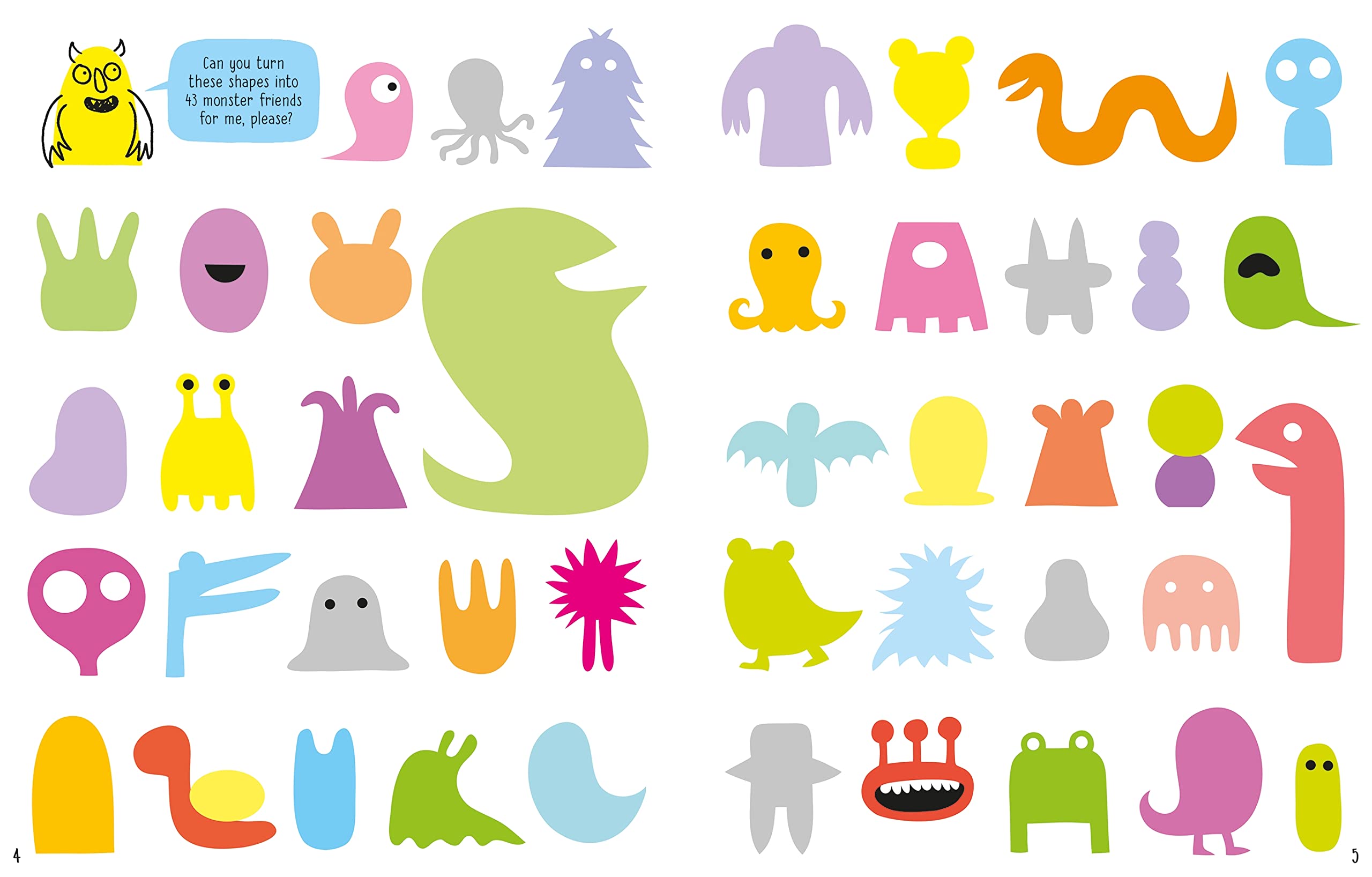 Fill an icy landscape with penguins. See how long a line you can doodle without stopping. Complete a crowd of monsters marching across the page or transform shapes into a gallery of faces.