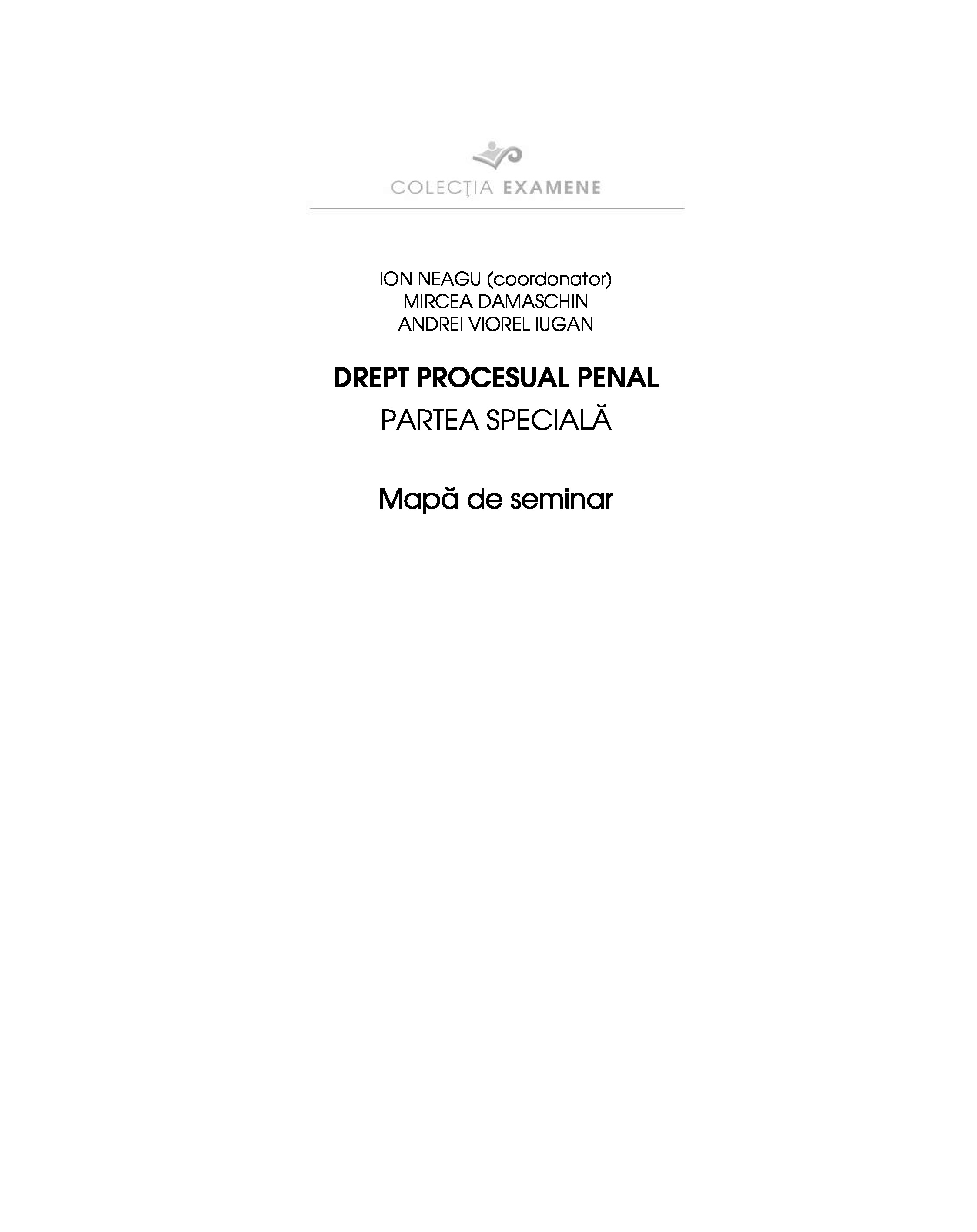 Lucrarea a fost conceputa ca un instrument de lucru eficient pentru parcurgerea acestei discipline juridice deosebit de insemnate, care se regaseste in tematica tuturor examenelor importante ale carierei juridice – Drept procesual penal. Partea speciala.