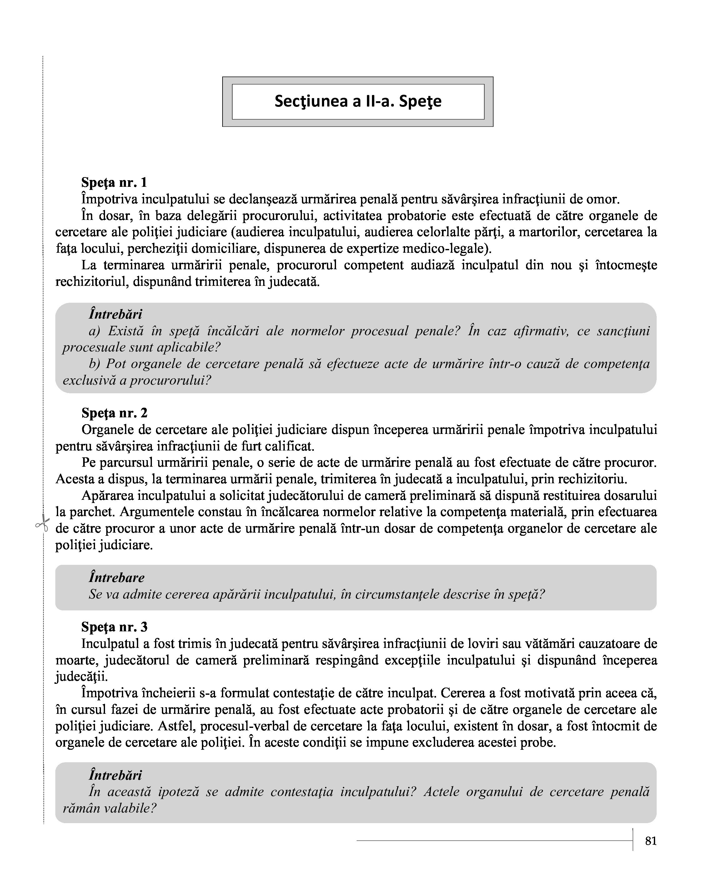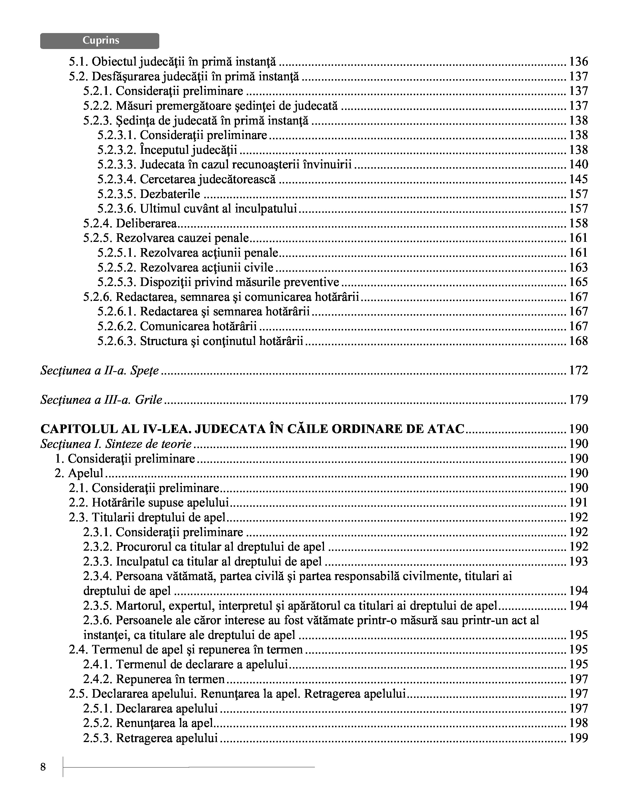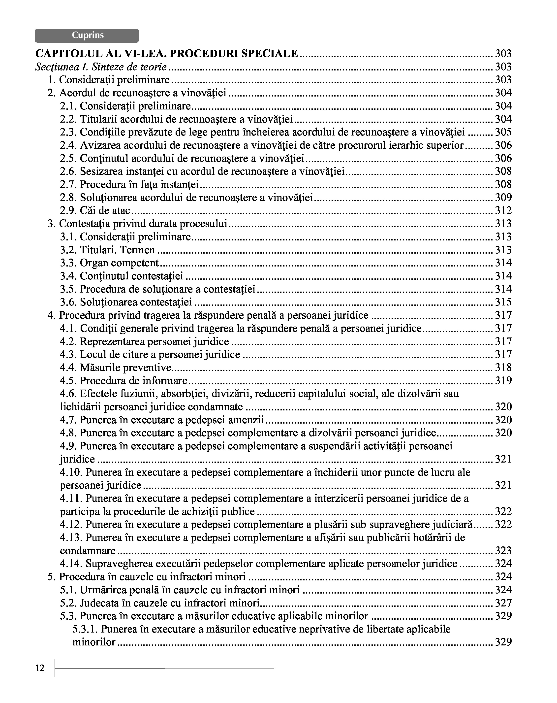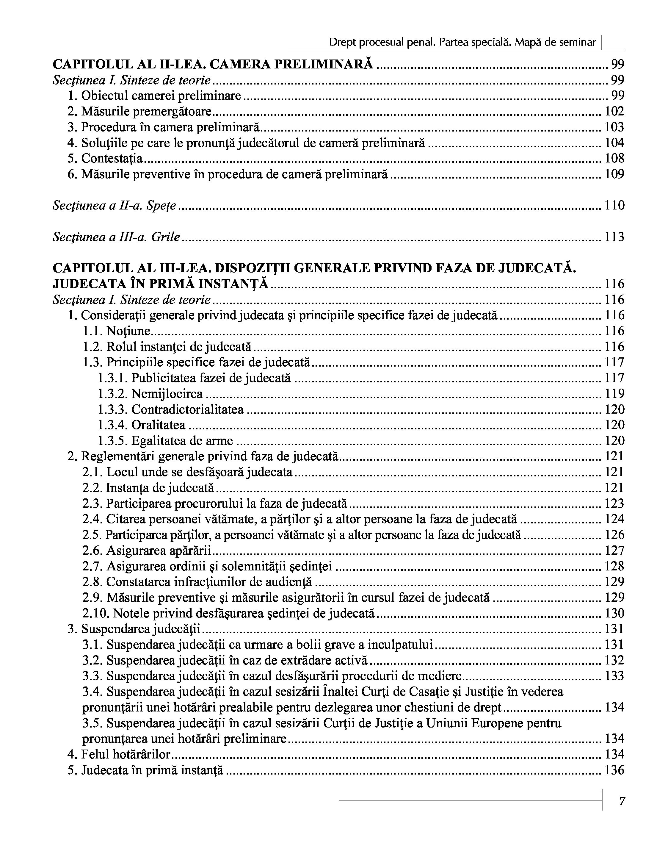 - sintezele de teorie sunt concepute prin prezentarea logica a materiei procesual penale;