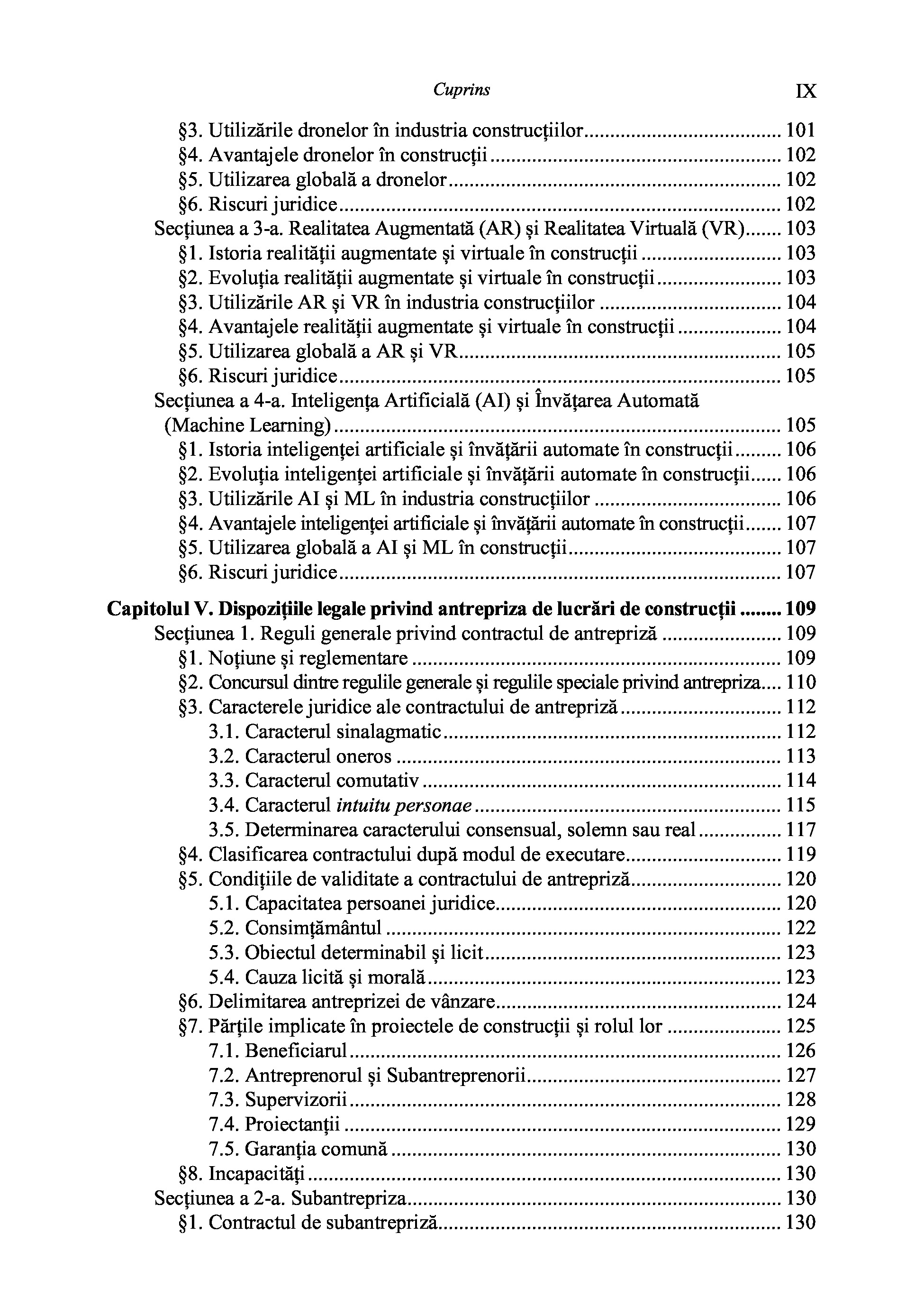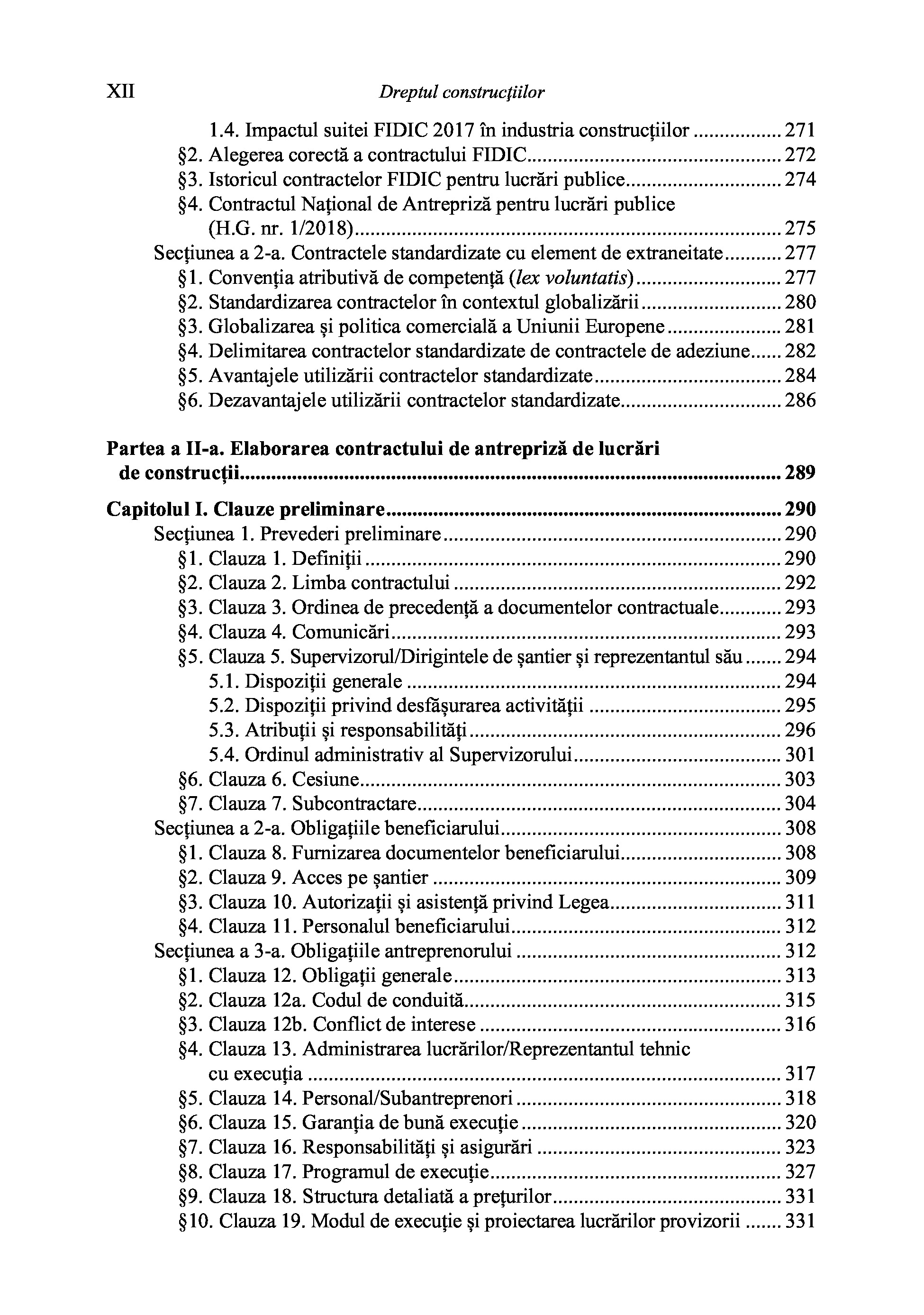Structura cărții este clară și bine definită. Prima parte abordează aspectele juridice ale antreprizei de construcții și oferă comentarii detaliate asupra legislației relevante. Partea a doua are un caracter practic și devine un ghid indispensabil pentru redactarea contractelor de antrepriză, bazat pe prevederile Contractului Național.