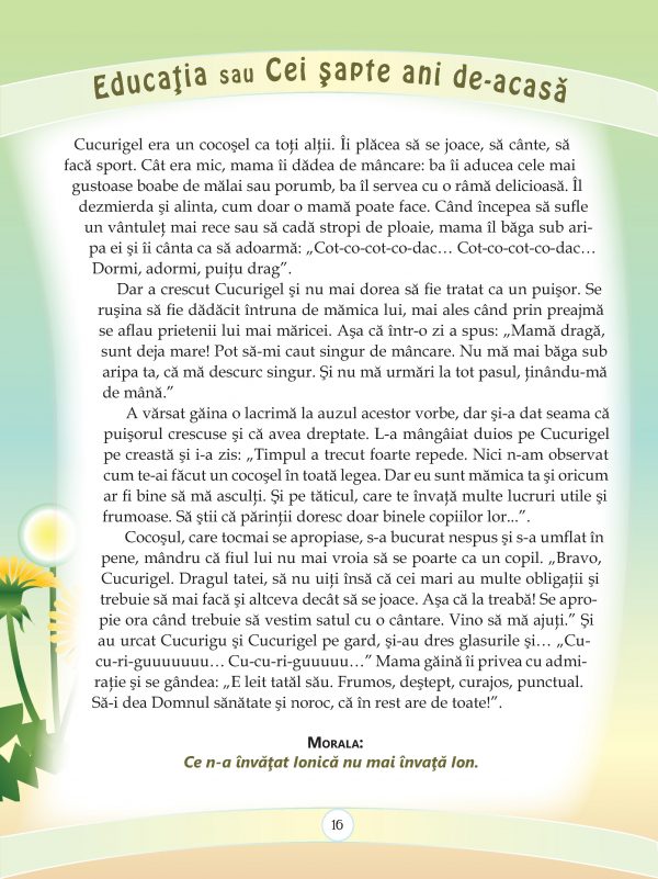 Cartea este structurată în două rubrici: Duminica cu surprize şi Săptămâna profesiilor. Povestioarele şi poeziile incluse în prima parte a cărţii relatează despre întâmplări din viaţa fiinţelor din jurul nostru. Ele sunt moralizatoare, dorind să contribuie la educarea unor valori ca ajutorul, prietenia, compasiunea, dărnicia.