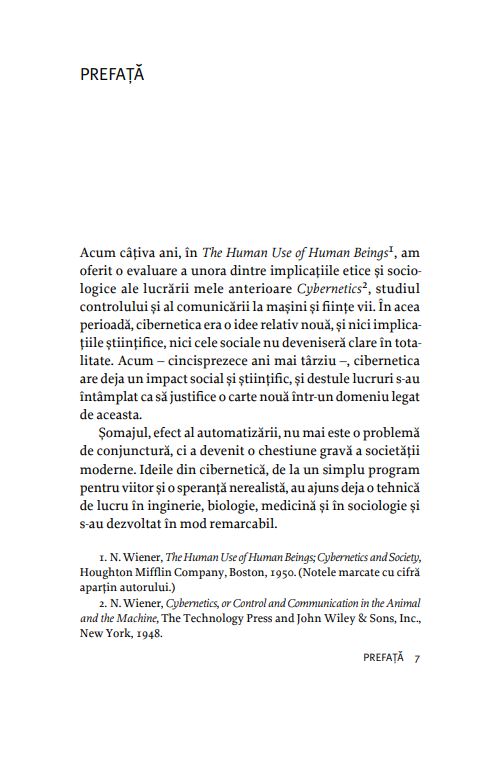 „Lumea viitorului va fi o luptă încă mai istovitoare cu limitele inteligenței noastre, iar nu un hamac confortabil în care să lenevim, așteptând să fim serviți de sclavii noștri roboți." - Norbert Wiener