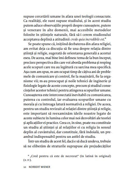 Norbert Wiener, numit, pe drept cuvânt, părintele ciberneticii, și-a sintetizat ideile și perspectiva asupra noii științe în această carte-testament, care pune în lumină punctele de coliziune dintre cibernetică și întrebările fundamentale ale religiei.