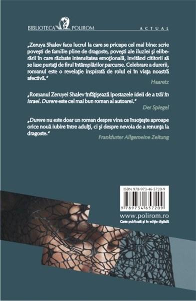 „Romanul Zeruyei Shalev infatiseaza ipostazele ideii de a trai in Israel. Durere este cel mai bun roman al autoarei.” (Der Spiegel)