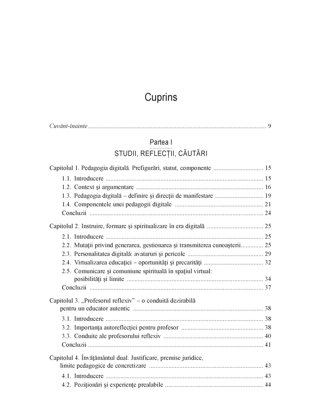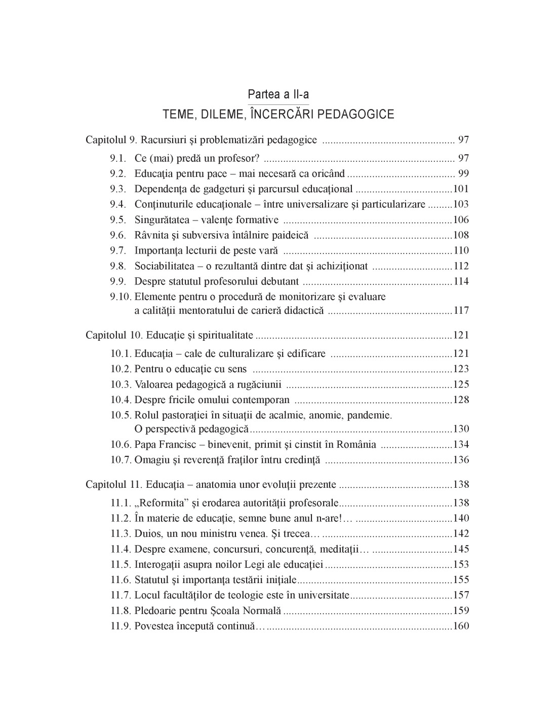 Toate aduc însă contribuții importante la teme de actualitate în educație: justificarea și funcționalitatea unei pedagogii digitale, statutul și căile de implementare ale învățământului dual, noi competențe care ar trebui asumate de profesori, influența gadgeturilor în dezvoltarea tinerilor, statutul profesorului debutant, rolul spiritualității în structurarea personalității, „epopeea” generării, asumării și implementării noilor legi ale educației.