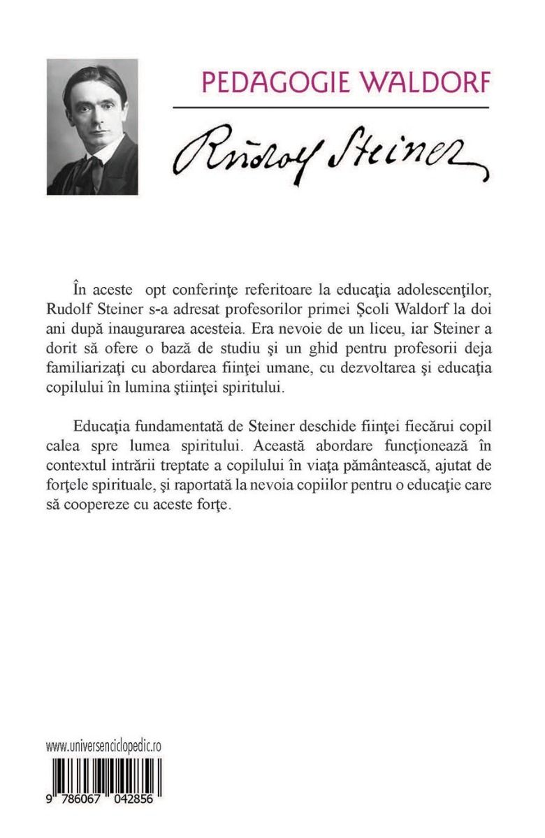 În aceste opt conferinţe referitoare la educaţia adolescenţilor, Rudolf Steiner s-a adresat profesorilor primei Şcoli Waldorf la doi ani după inaugurarea acesteia.