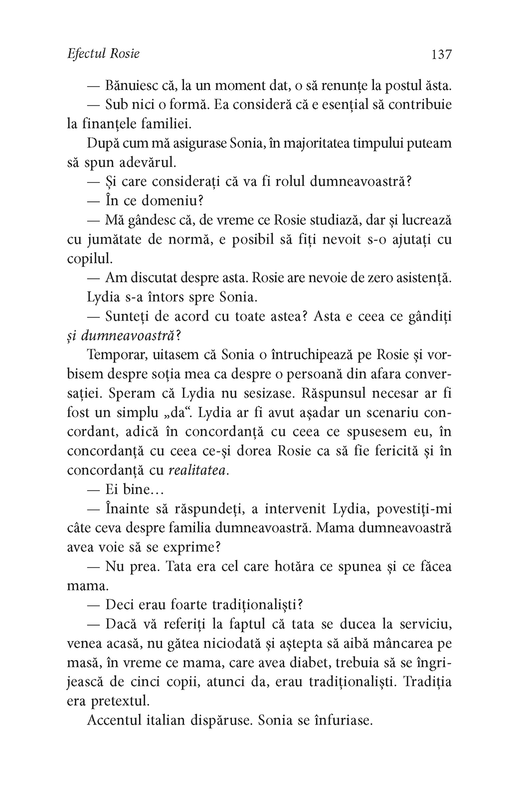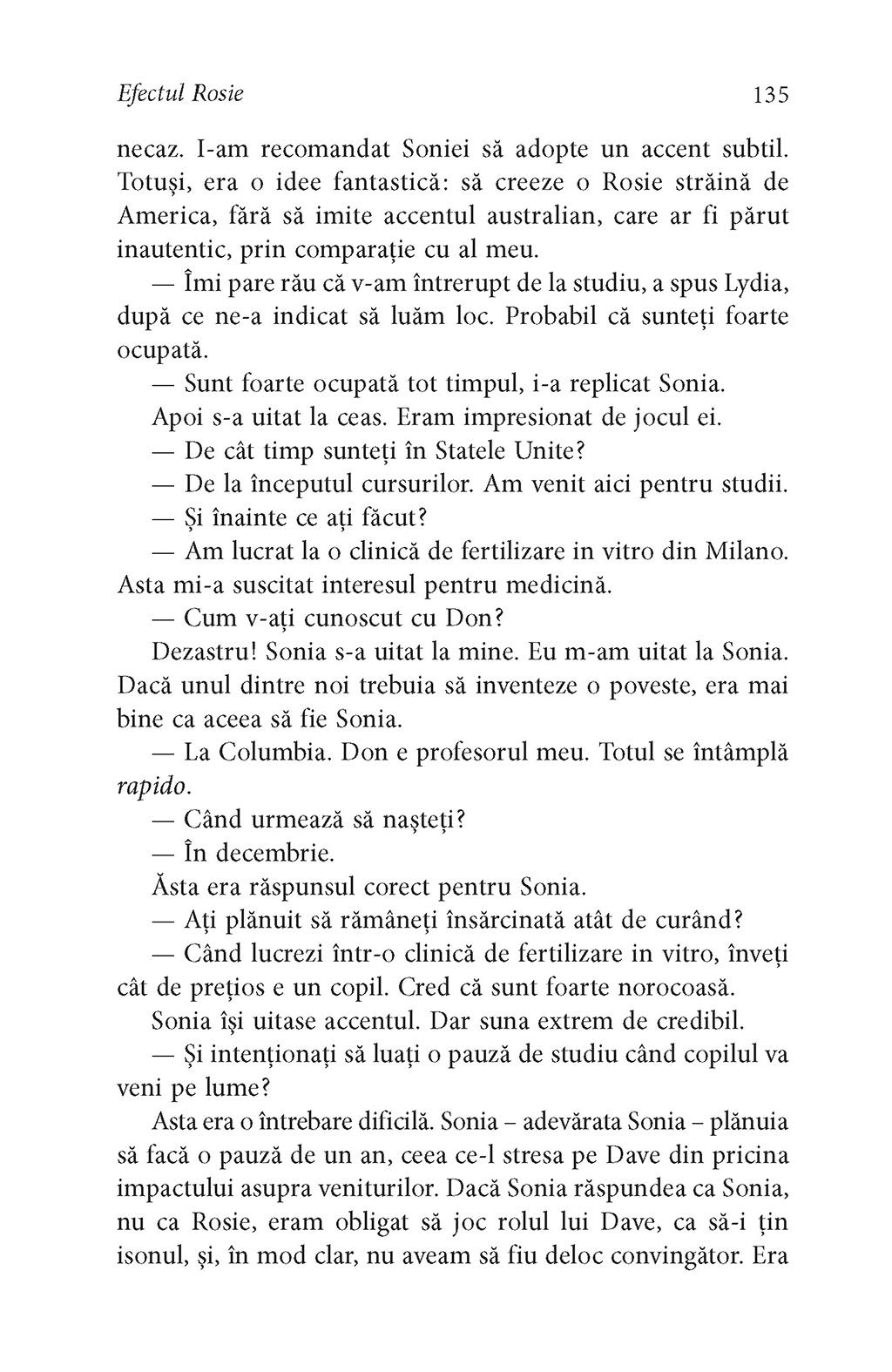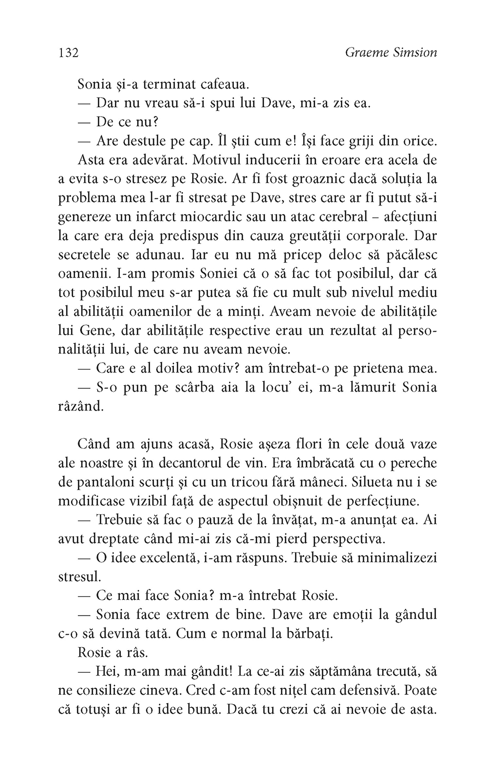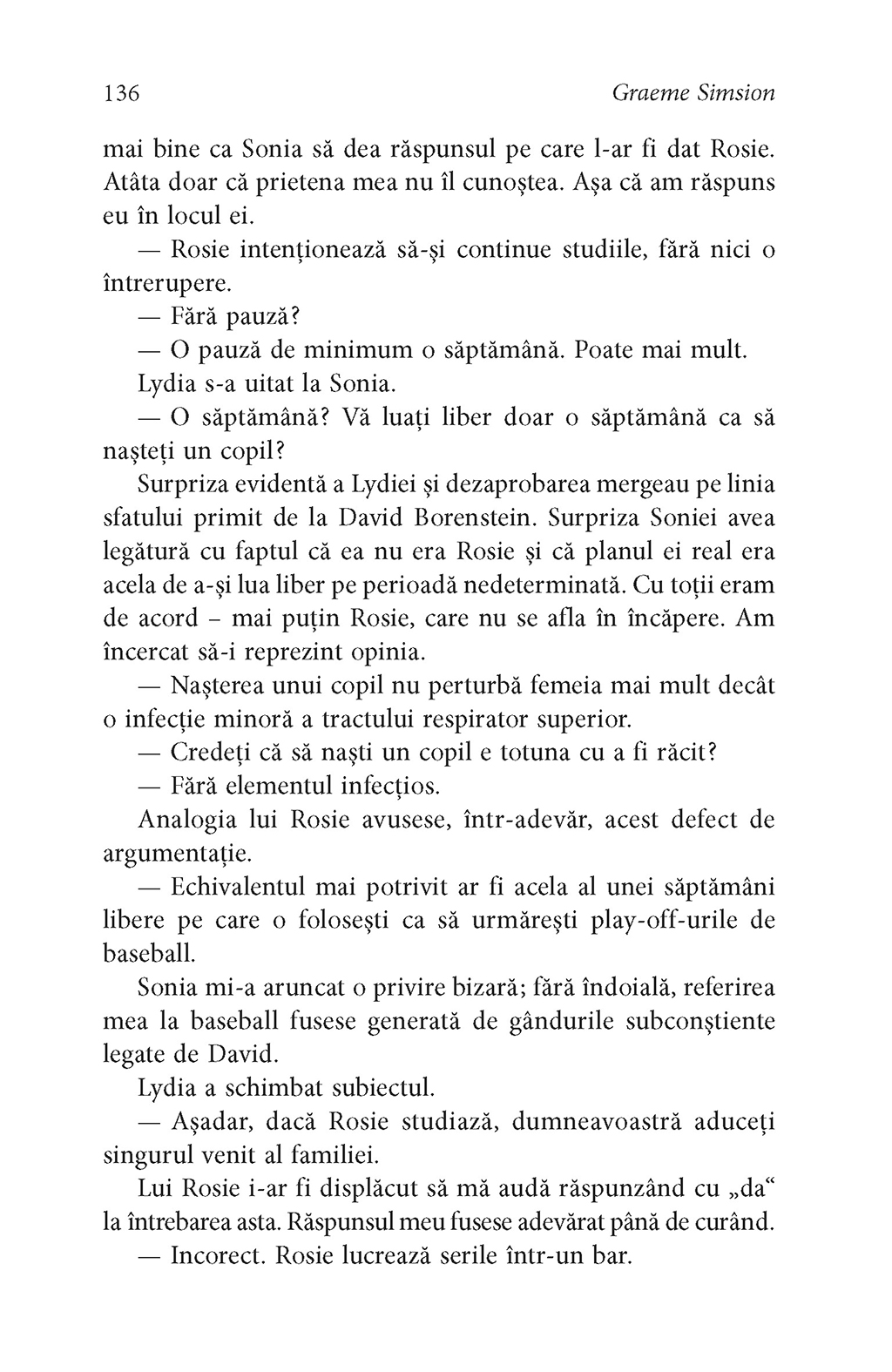 Al doilea roman al „trilogiei Rosie”, în care Don Tillman află că oamenii trebuie să se adapteze împrejurărilor ca să supravieţuiască.