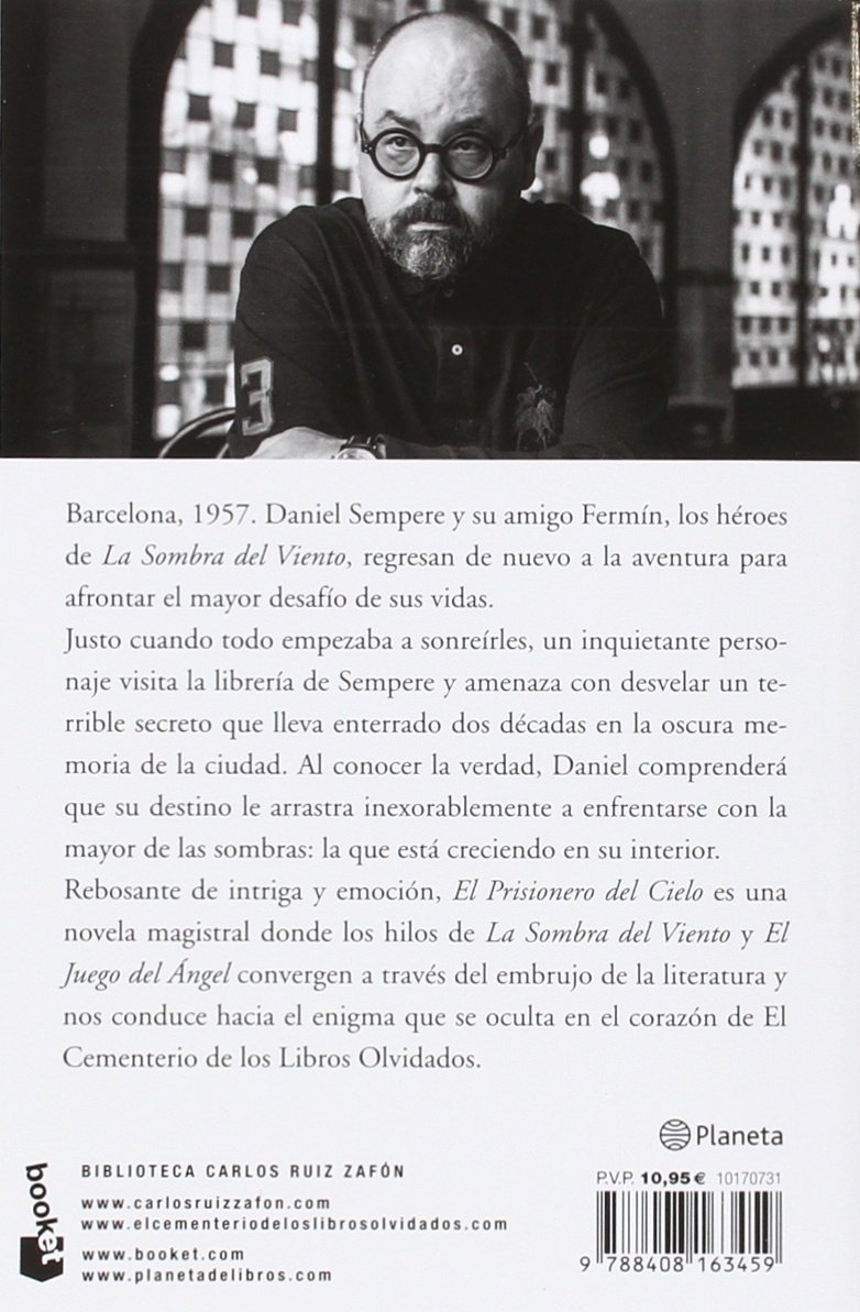 Rebosante de intriga y emoción, El Prisionero del Cielo es una novela magistral donde los hilos de La Sombra del Viento y El Juego del Ángel convergen a través del embrujo de la literatura y nos conduce hacia el enigma que se oculta en el corazón del Cementerio de los Libros Olvidados.