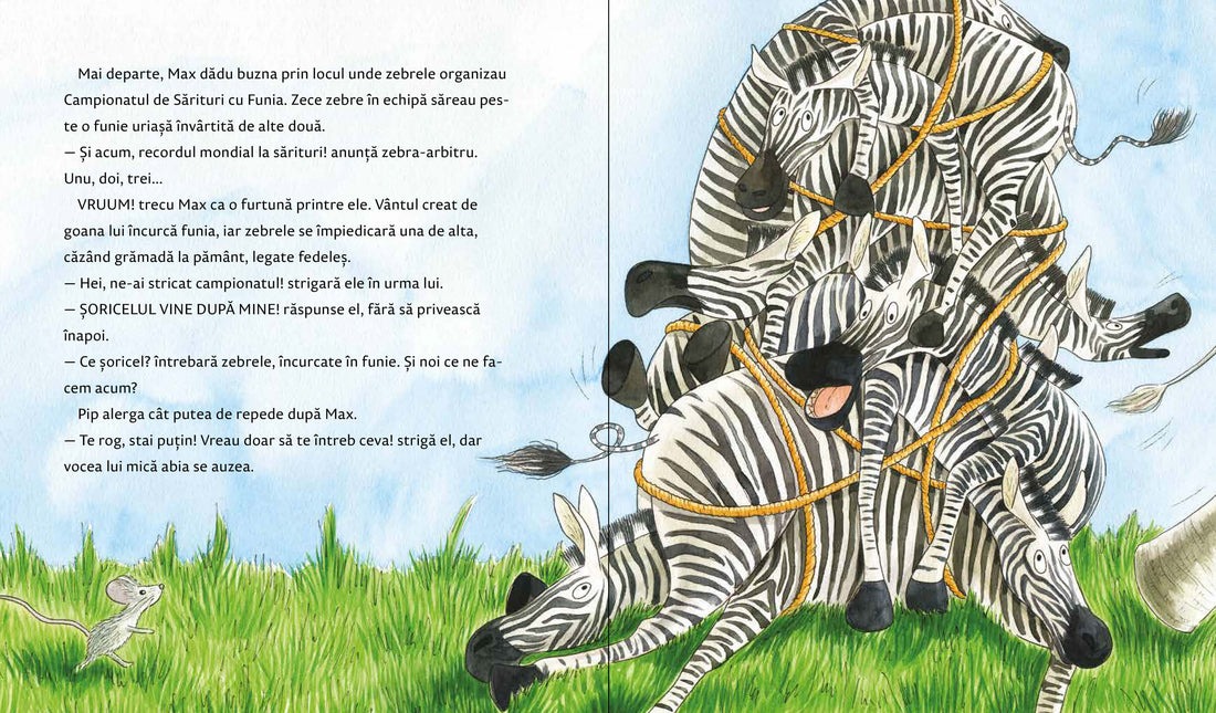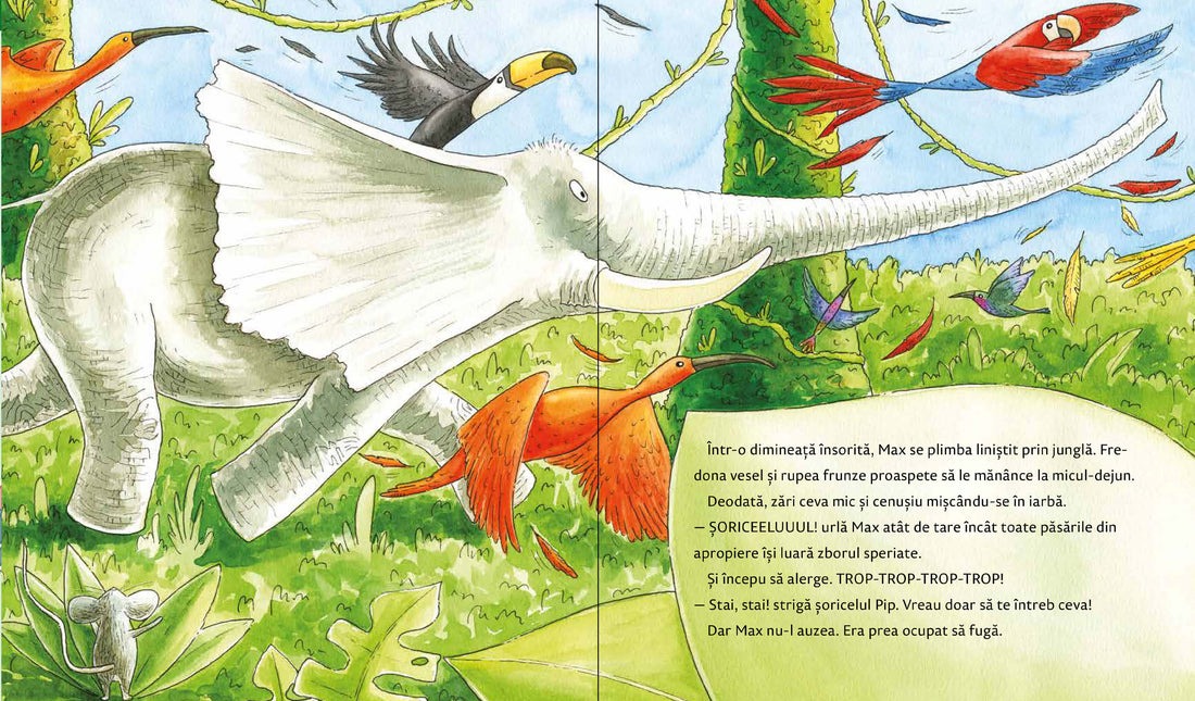 Bietul elefant tremură de spaimă când îl vede pe micuțul Pip alergând după el. O ia la goană prin junglă ca să scape de fiorosul… șoricel. Bineînțeles că nu mai e atent la nimic altceva și dărâmă, răstoarnă, face praf și seamănă haos în drumul lui. Ce dezastru!