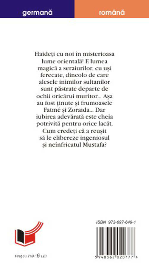 In misterioasa lume orientala ati mai patruns, cu siguranta, de nenumarate ori. E lumea magica a seraiurilor, cu usi ferecate, dincolo de care alesele inimilor sultanilor sunt tinute departe de ochii oricarui muritor… Asa au fost tinute si frumoasele Fatma si Zoraida… Dar iubirea adevarata este o cheie potrivita pentru orice lacat. Cum credeti ca a reusit sa le elibereze ingeniosul si neinfricatul Mustafa?