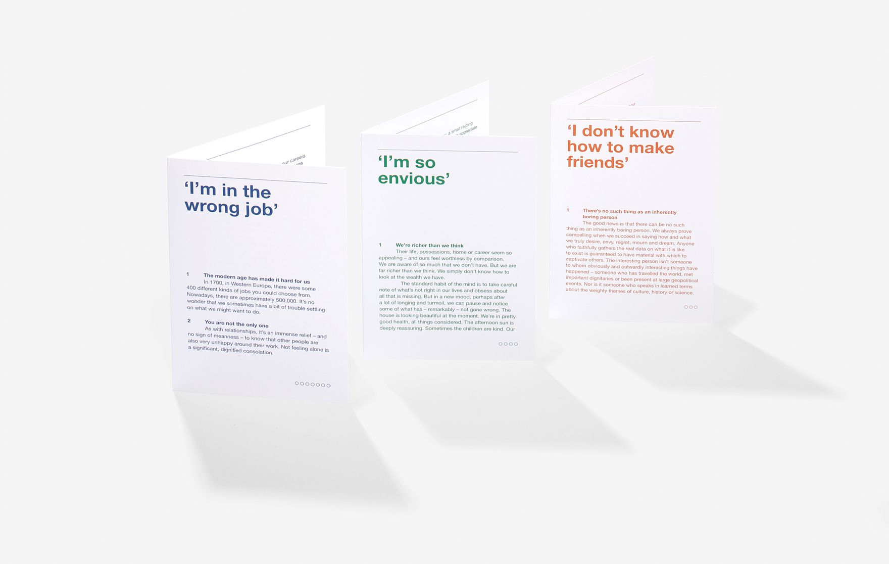 A box of wise emergency advice for 20 key psychological situations, including: Friendship, Love, Sex, Work and Self.