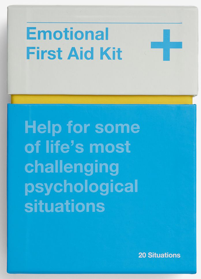 This is a counterpart to that medical first aid kit, an emotional kit that provides a set of useful salves to some of life’s most challenging psychological situations.