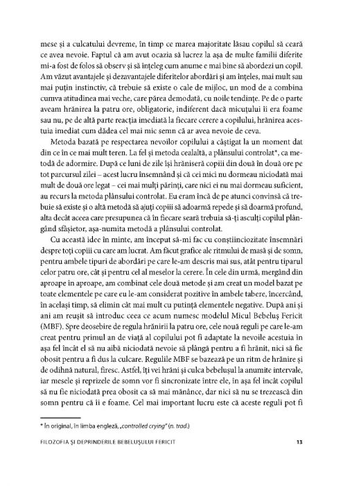 Convingerea autoarei este că dormitul şi hrănirea în mod corespunzător sunt intrinsec legate şi că de foarte multe ori bebeluşii şi copiii până la trei ani sunt supuşi unor metode de a adormi şi a mânca nepotrivite cu vârsta lor. Indiferent dacă cel mic este agitat, refuză să adoarmă sau se trezeşte de câteva ori pe noapte, abordarea holistică şi blândă propusă în această carte vă va ajuta copilul să mănânce şi să adoarmă corect, rezolvând astfel aceste probleme pentru mult timp.