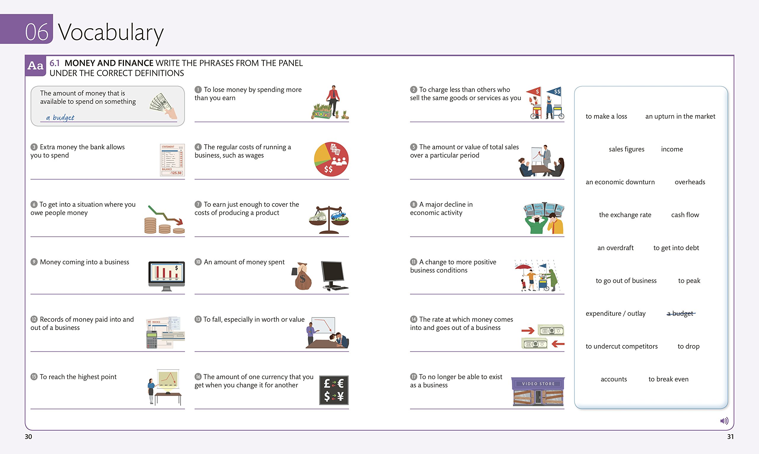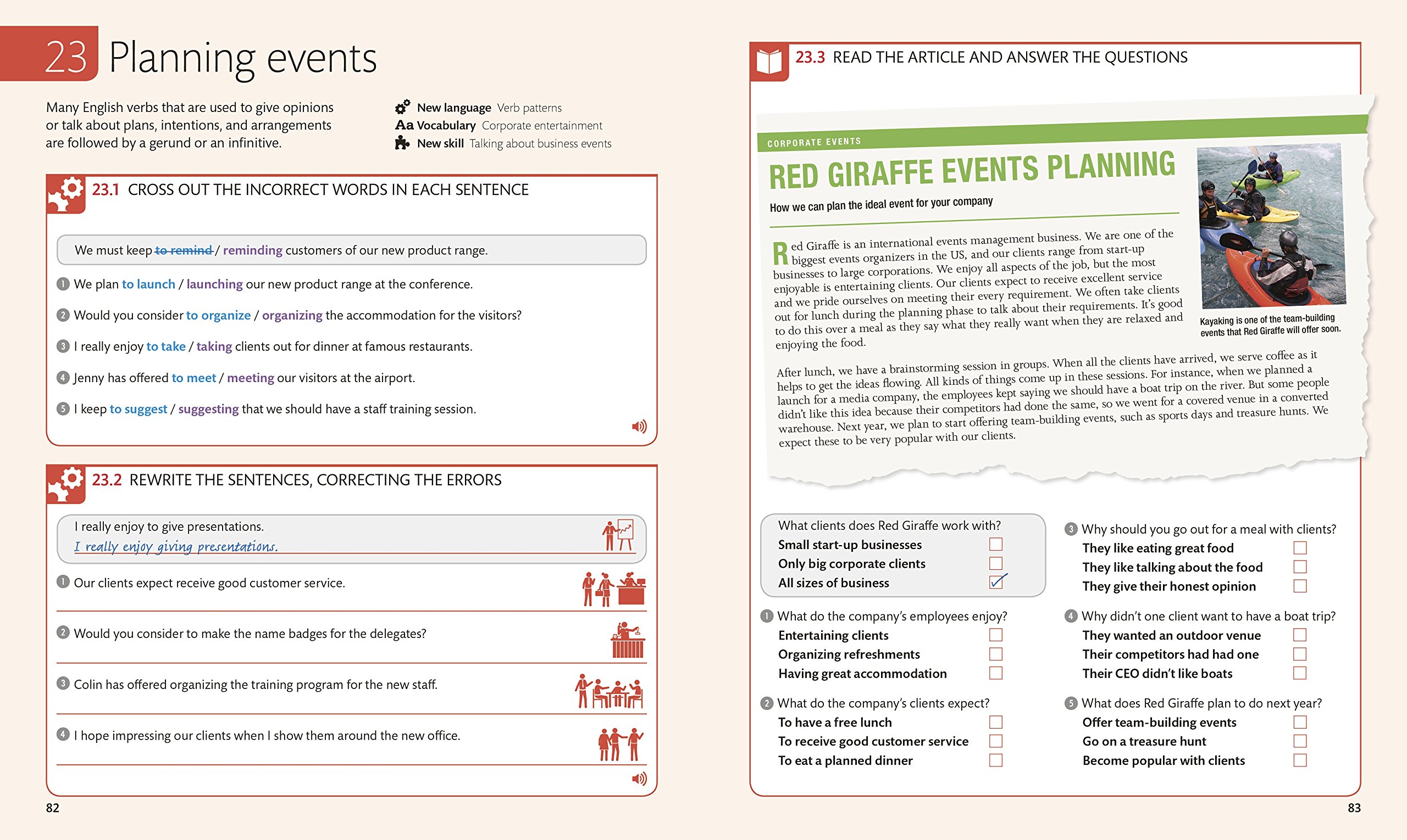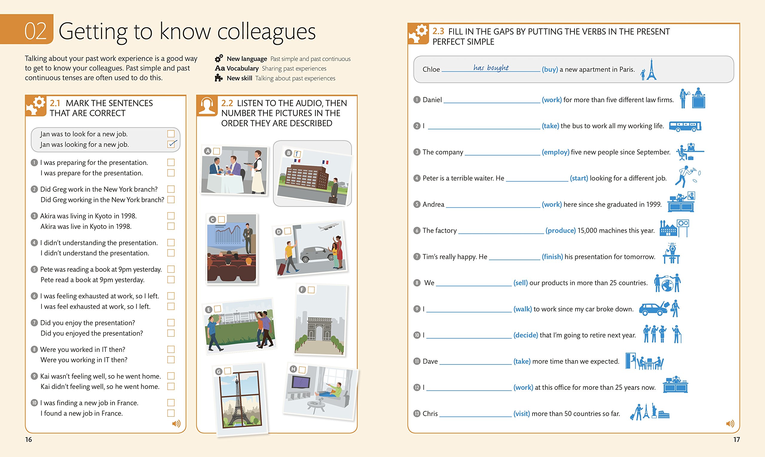 Learn business English by reinforcing key language skills, grammar rules, and vocabulary with listening, speaking, reading, and writing exercises. This unique course is easy to use, starting at beginner level and working up to advanced English to help you grow in confidence as you learn. This Business English Intermediate Practice Book introduces business topics such as interpersonal skills, meeting vocabulary, emailing a client, and attending interviews.