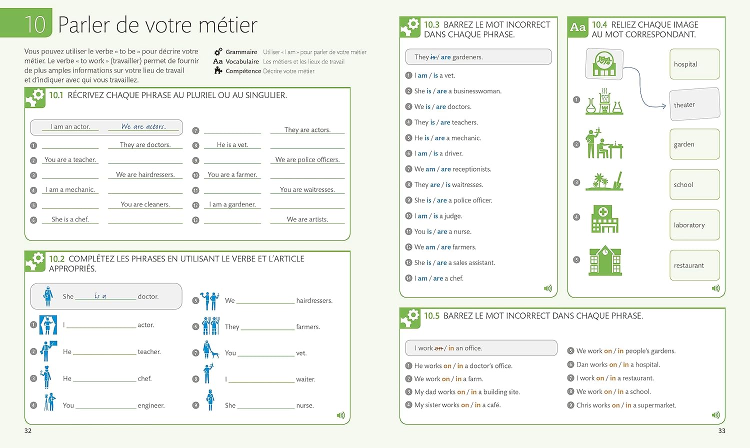 You'll expand your English vocabulary with topics like introducing yourself, your job, and hobbies and interests. Get to grips with grammar rules, including using apostrophes and joining sentences, and perfect your pronunciation with audio exercises by native speakers. Eye-catching illustrations and step-by-step explanations keep content simple and straightforward for easy learning.