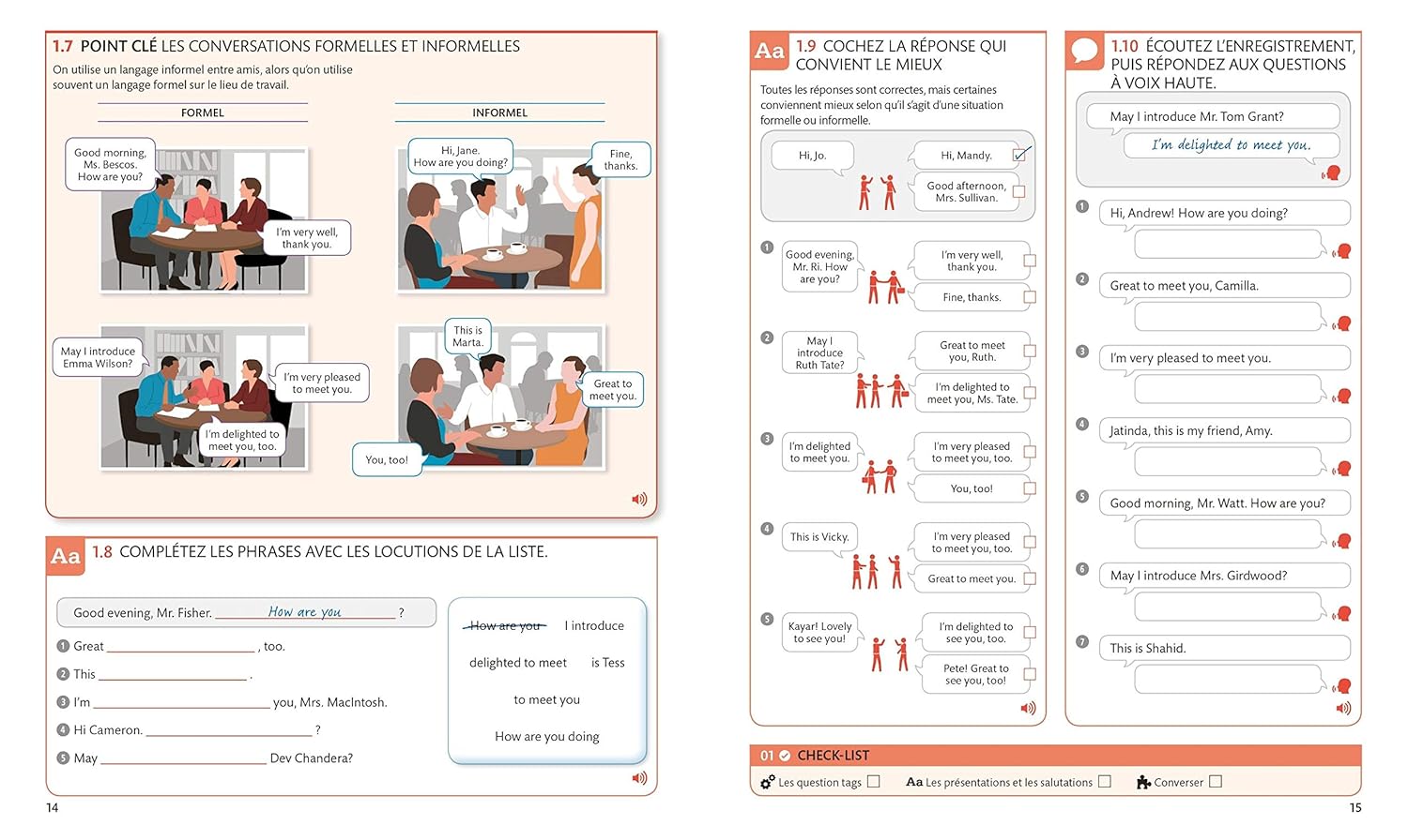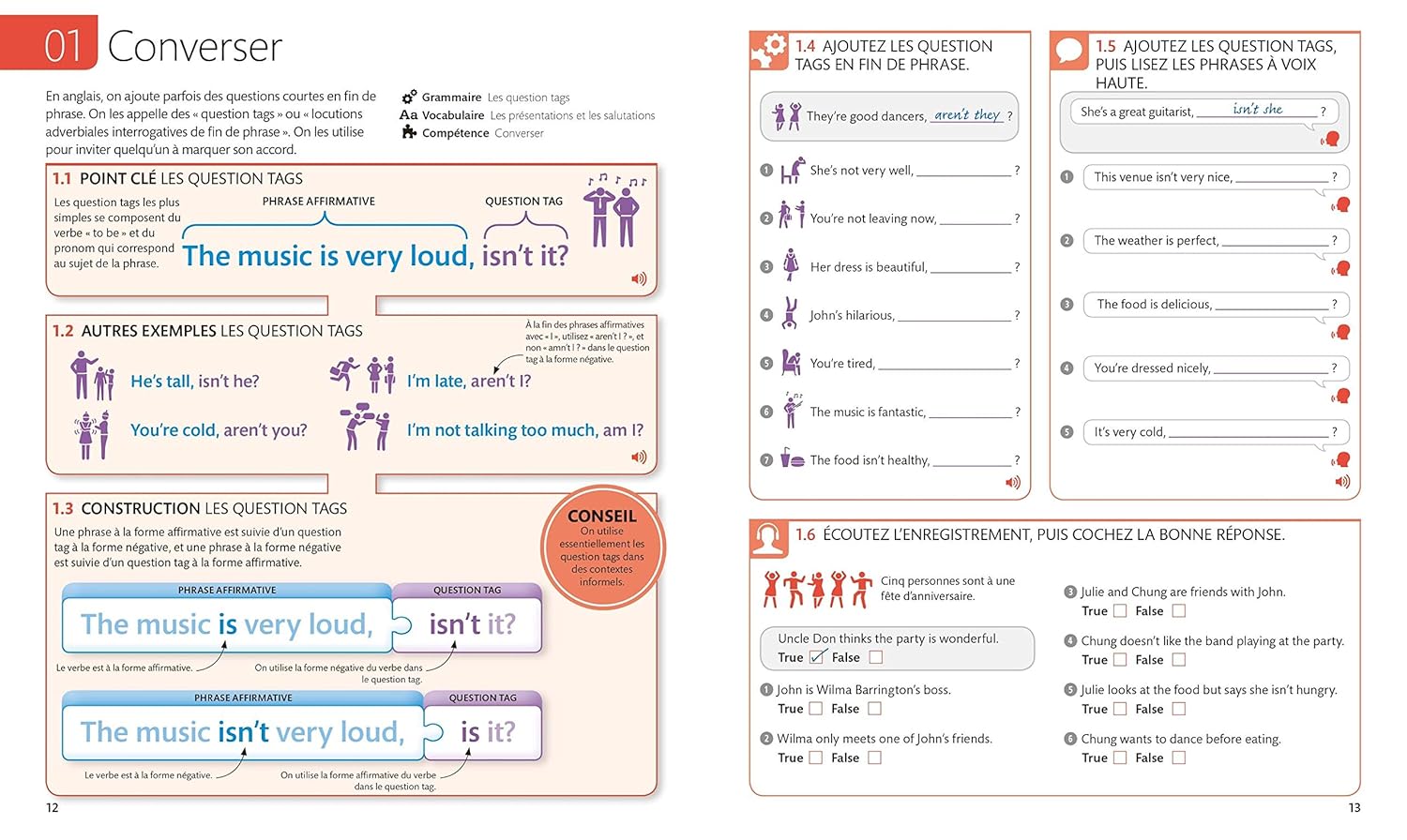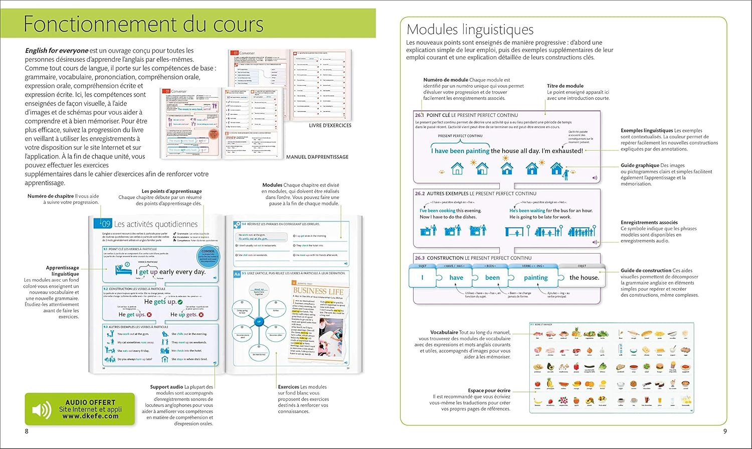 Un cours d'anglais complet qui combine explications grammaticales visuelles, exercices d'entraînement et supports audio. La méthode parfaite pour apprendre l'anglais par soi-même ! Des guides grammaticaux visuels pour faciliter la compréhension des points linguistiques complexes. Des modules courts pour apprendre à votre rythme. Des illustrations pour vous aider visuellement à assimiler le vocabulaire et les points grammaticaux facilement. Des extraits audio de la vie courante pour améliorer votre compréhension orale et votre maîtrise de la langue. Des exercices simples pour pratiquer les différents aspects de la langue anglaise : écriture, lecture, écoute et conversation. Un cours d'anglais complet qui combine explications grammaticales visuelles, exercices d'entraînement et supports audio. La méthode parfaite pour apprendre l'anglais par soi-même ! Des guides grammaticaux visuels pour faciliter la compréhension des points linguistiques complexes Des modules courts pour apprendre à votre rythme Des illustrations pour vous aider visuellement assimiler le vocabulaire et les points grammaticaux facilement. Des extraits audio de la vie courante pour améliorer votre compréhension orale et votre maîtrise de la langue. Des exercices simples pour pratiquer les différents aspects de la langue anglaise : écriture, lecture, écoute et conversation.