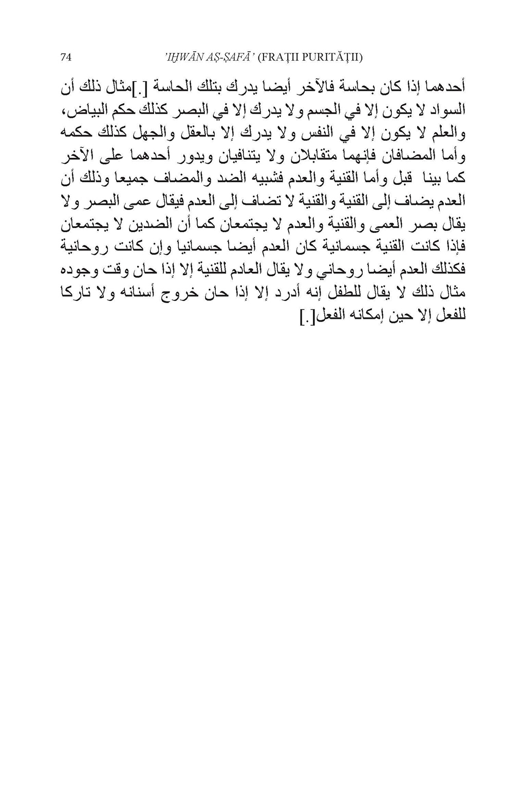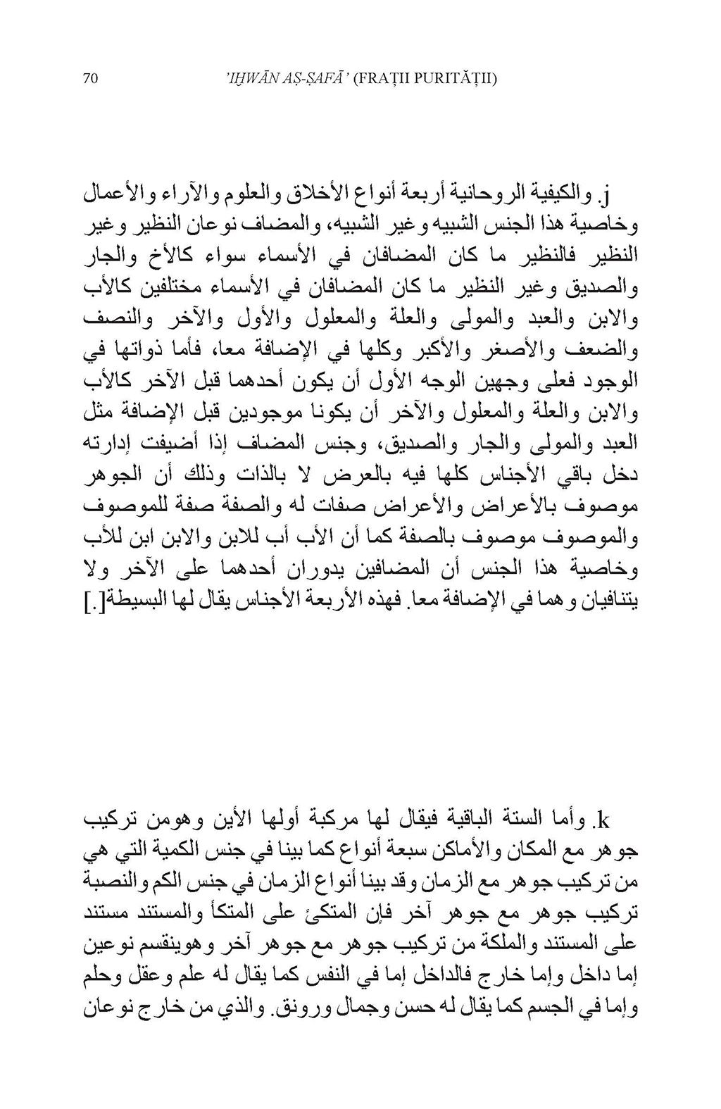 Grupul de erudiți cunoscut sub numele de „Frații Purității” a compus, în regiunea Baṣra, opera enciclopedică Rasā’il („Epistole”), care însumează 52 de epistole și se divide în patru secțiuni, fiecare dintre ele avînd la bază principiul cunoașterii universale pentru descoperirea căruia se reunesc strategii de demonstrație specifice, corespondente cu ceea ce cultura latină occidentală a numit trivium și quadrivium.