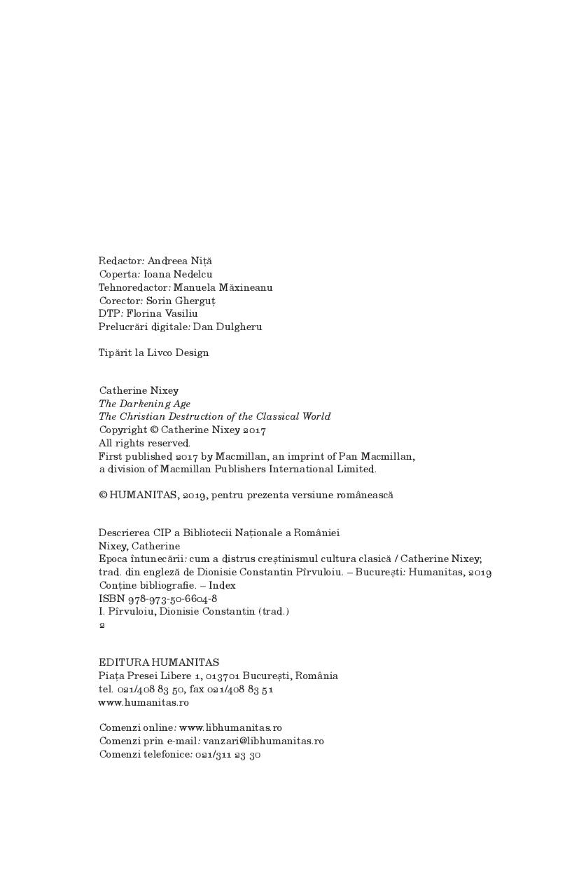 „Vreme îndelungată, istoria distrugerilor provocate de fanatismul creștinilor din primele veacuri a fost ocultată cu bună-știință. Catherine Nixey ne spune această poveste a nimicirii lumii clasice, într-o carte care a stârnit o furtună de polemici.
