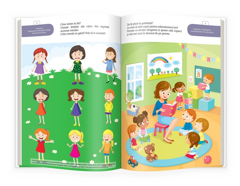 înțelegerea emoțiilor după expresiile faciale și după limbajul trupului, înțelegerea comportamentului celorlalți • înțelegerea și depășirea fricilor • dezvoltarea empatiei pentru sentimentele și opiniile celorlalți și găsirea căilor de a-i ajuta • înțelegerea problemelor cu care se confruntă ceilalți și găsirea de soluții • abilitatea de a comunica cu cei din jur • abilitatea de a-și păstra prietenii • stimularea dorinței de a împărți cu ceilalți • abilitatea de a distinge diferențele dintre copiii din diferite zone ale lumii • abilitatea de a-și înțelege propriile emoții • activități, jocuri, alimente, povești, sporturi preferate • stimularea independenței • folosirea emoțiilor proprii în luarea deciziilor • pregătirea pentru grădiniță, respectarea regulilor • protejarea mediului înconjurător etc.