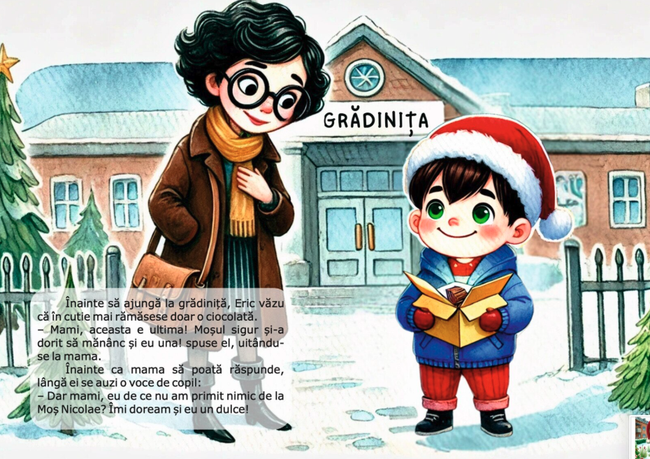 „Eric, ajutorul lui Mos Nicolae” este o poveste fermecatoare si educativa care ii inspira pe copii sa fie generosi, sa daruiasca din inima si sa inteleaga ca fiecare gest frumos se intoarce cu si mai multa bucurie.
