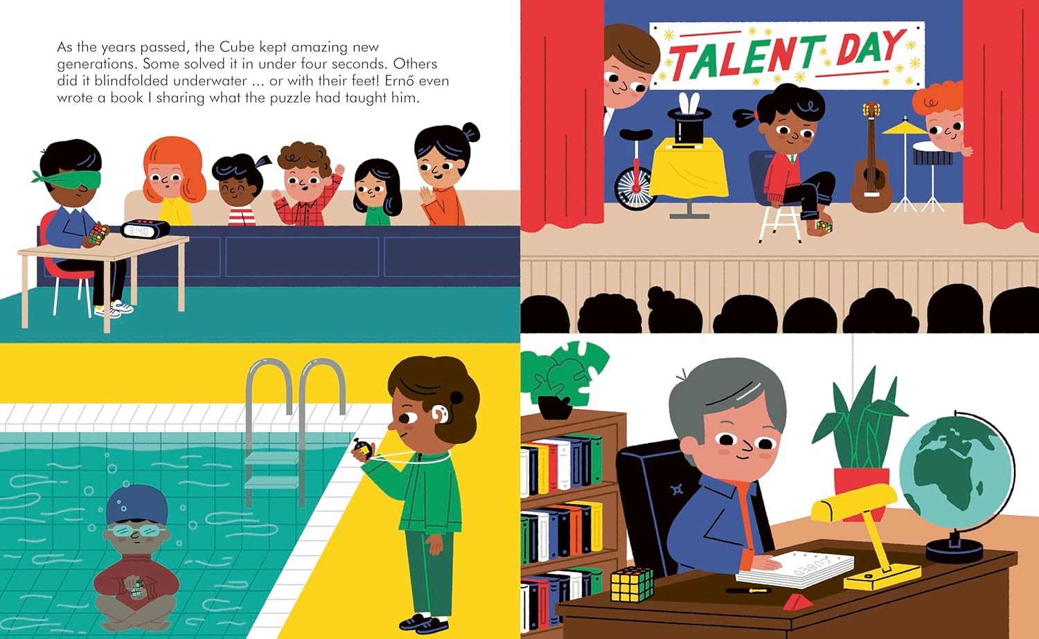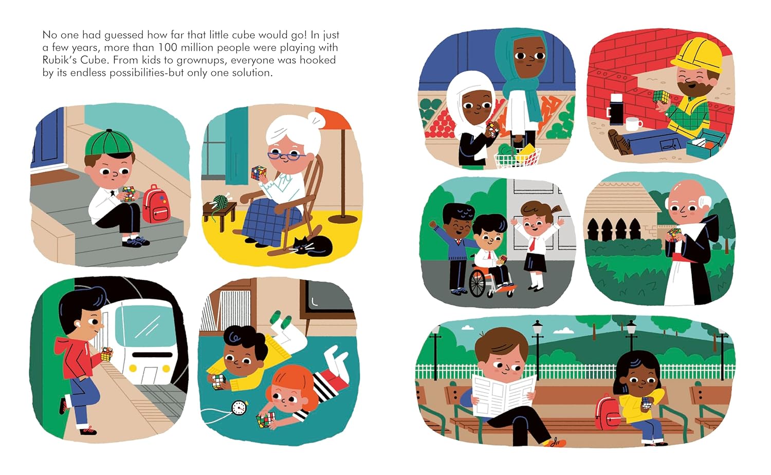 A global sensation, the cube soon captivated the world; over 350 million Rubik’s cube have been sold, making it one of the bestselling toys in history. Erno’s success story celebrates the power of curiosity and innovation, showing children that even small ideas can have a big impact.