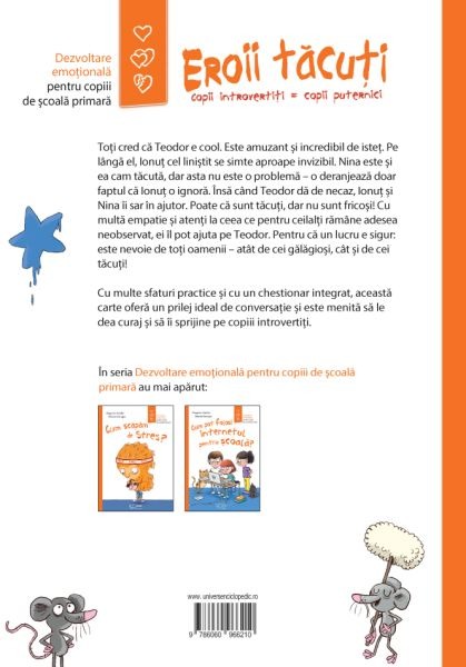 Cu multă empatie și atenți la ceea ce pentru ceilalți rămâne adesea neobservat, ei îl pot ajuta pe Teodor. Pentru că un lucru e sigur: este nevoie de toți oamenii – atât de cei gălăgioși, cât și de cei tăcuți! Cu multe sfaturi practice și cu un chestionar integrat, această carte oferă un prilej ideal de conversație și este menită să le dea curaj și să îi sprijine pe copiii introvertiți.
