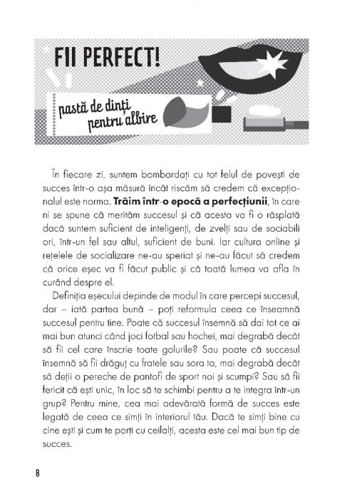 Cartea de faţă este un ghid practic, util și deosebit de prietenos care se adresează adolescenților, ajutându-i pe aceștia să capete încredere în ei şi să se descurce în momentele când lucrurile nu merg conform planului. În Eșecozofia pentru adolescenți, Elizabeth Day îţi împărtășește nu doar propriile experiențe, ci și poveștile personale ale invitaților pe care i-a avut în podcastul ei de mare succes, How To Fail, încurajându-te să îmbrățișezi eșecul ca pe o excelentă oportunitate de a învăța mai mult.